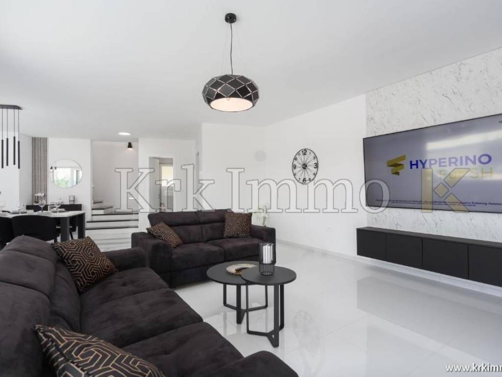 For sale is a modern detached house, in a quiet location in Malinska, far from the noise and bustle, in the neighborhood of luxury villas and new buildings.