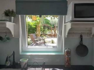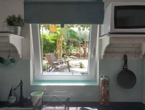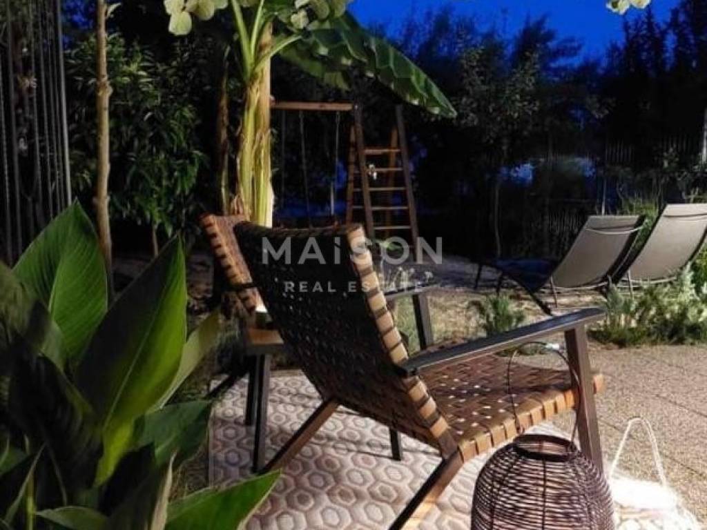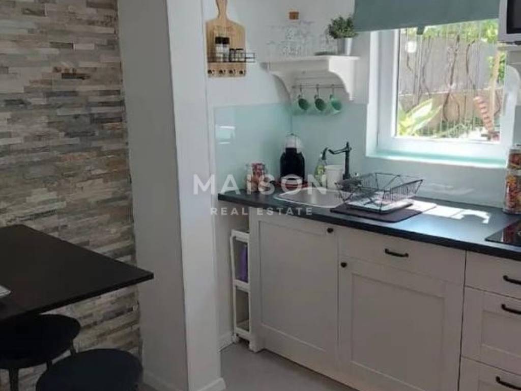The apartment features a living room connected to the kitchen, a bathroom, and a terrace that opens onto a beautifully arranged outdoor area of 75 m². This private garden space creates a peaceful corner ideal for relaxation, social gatherings, gardening or simply enjoying the outdoors.