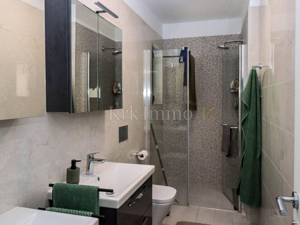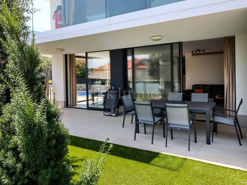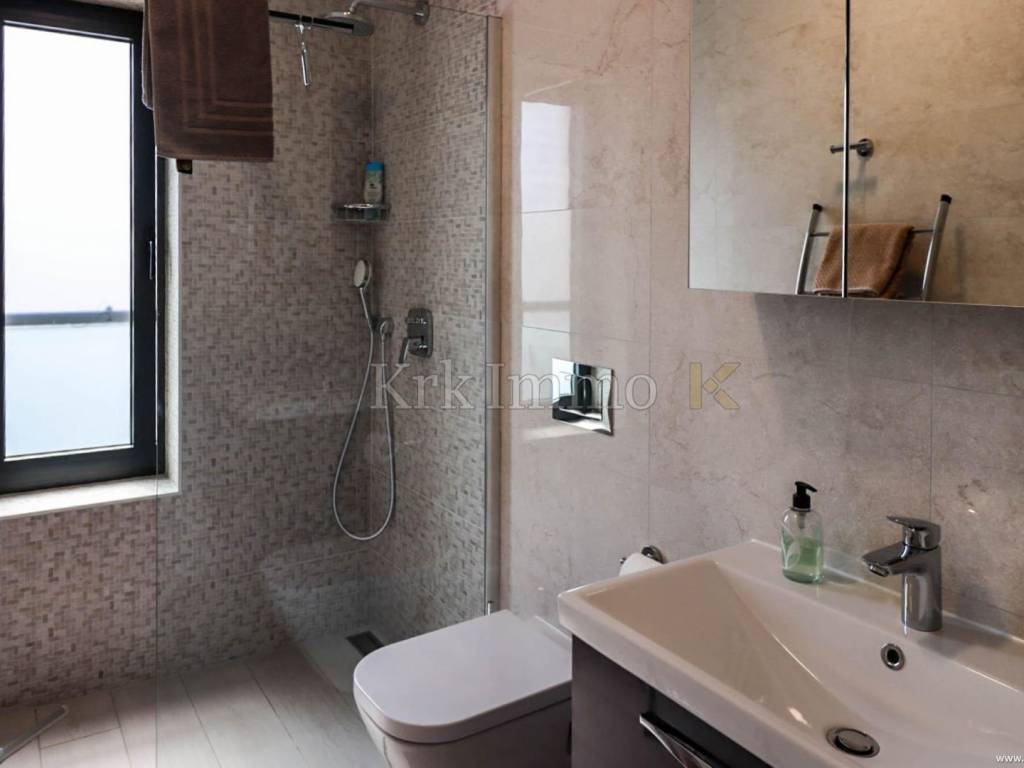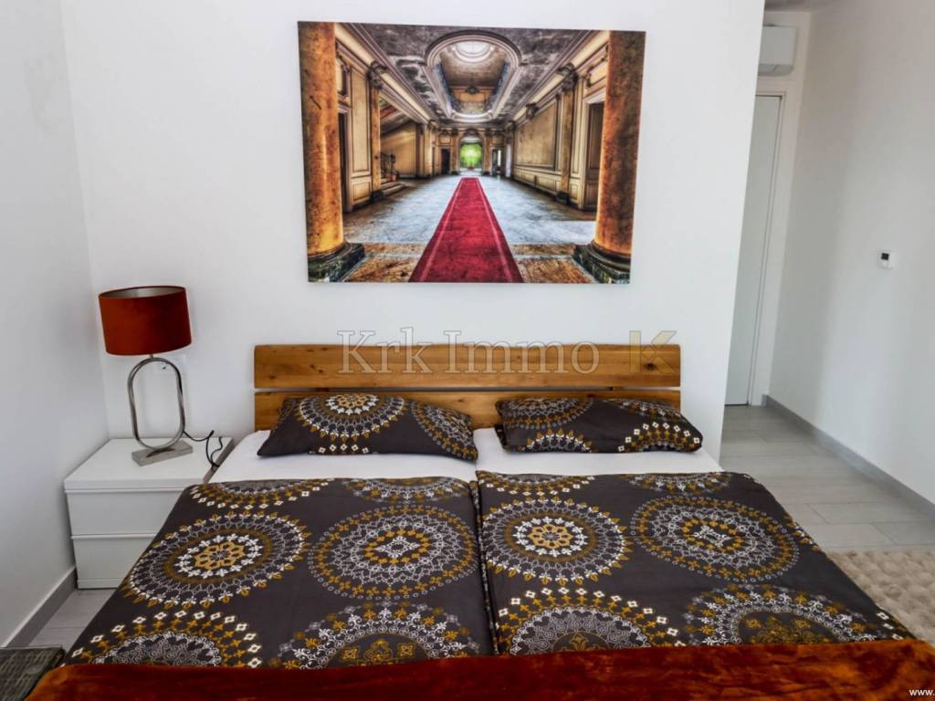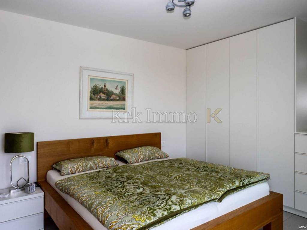 For sale is a modern two-story apartment in Malinska, in a quiet location in the immediate vicinity of the sea, only a 3-minute walk from the nearest beach. The apartment has an area of 130 m2 and consists of two floors.