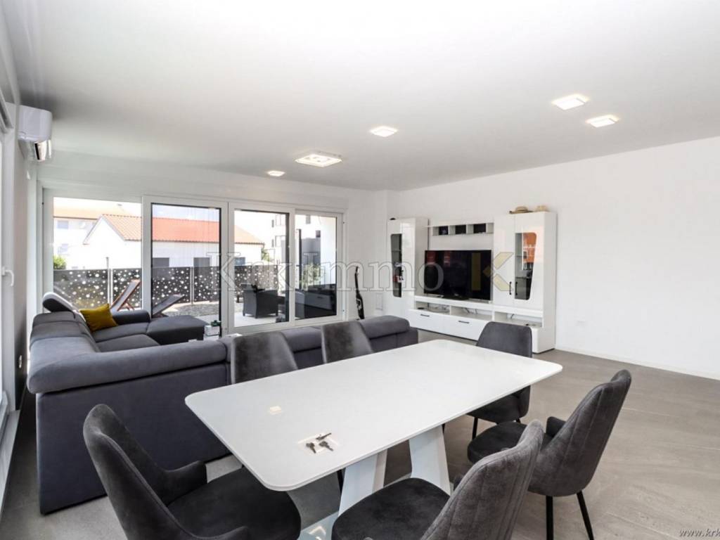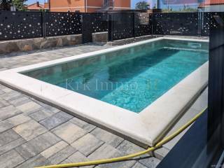 The garden is nicely decorated, with a swimming pool, sun deck and two parking spaces. The house is equipped with air conditioning, underfloor heating, high-quality floor coverings and ceramics, three-layer PVC joinery and security doors. It is for sale fully equipped and furnished, and is ready for immediate occupancy.