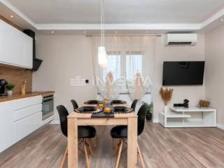 A fully renovated and equipped apartment is for sale, located on the high ground floor of a smaller building, with a total net usable area of 41 m². The apartment is located in a quiet neighborhood of Pula, fully equipped and renovated. It has a new fitted kitchen, new PVC windows, a renovated bathroom with a shower and washing machine, one bedroom with access to the terrace and an additional room with a built-in wardrobe, inverter air conditioning, and underfloor heating throughout the entire apartment.
