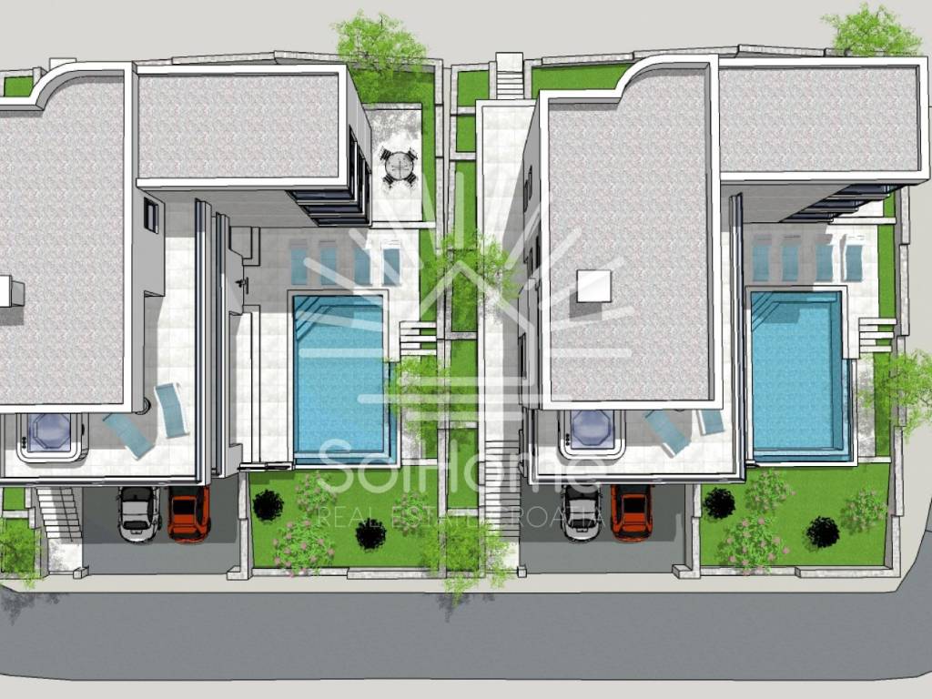 In the Basement There is a Garage for 2 Cars, Storage Room, Laundry Room and Space for the Pool and House Technology and Electrical Appliances.