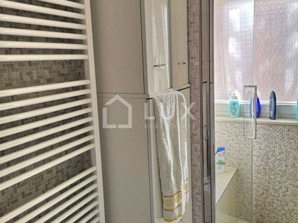 The apartment has an excellent layout and extends from the second floor to the attic of the building. It has an area of 110 m2 and consists of a living room with a dining room and kitchen, a bathroom, one bedroom and a terrace with a beautiful view of the sea. Internal stairs lead to the attic where there are three bedrooms, a toilet and a boiler room. The apartment has one parking spot. Excellent location near all facilities and only 500m from the sea.