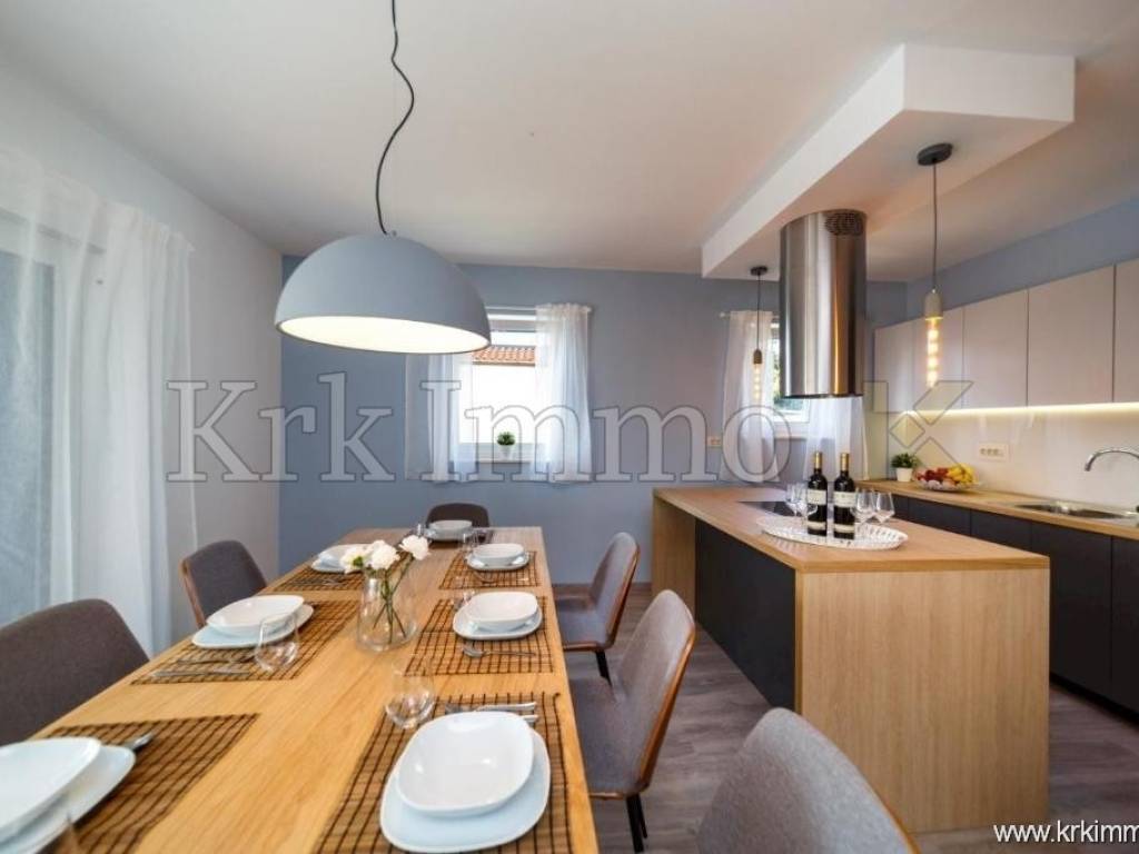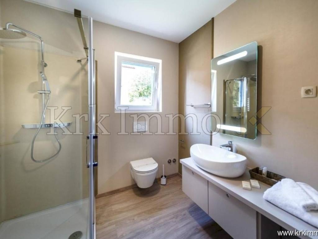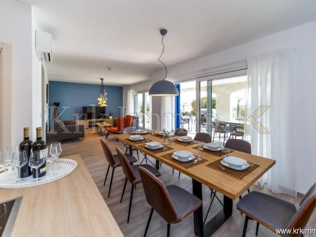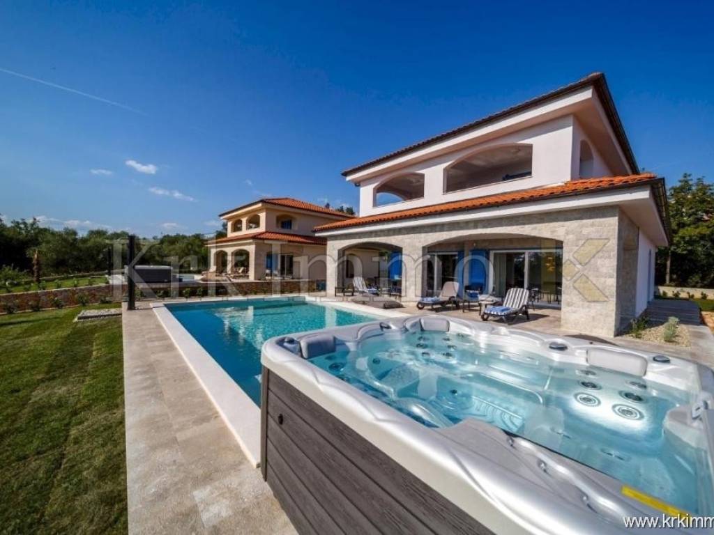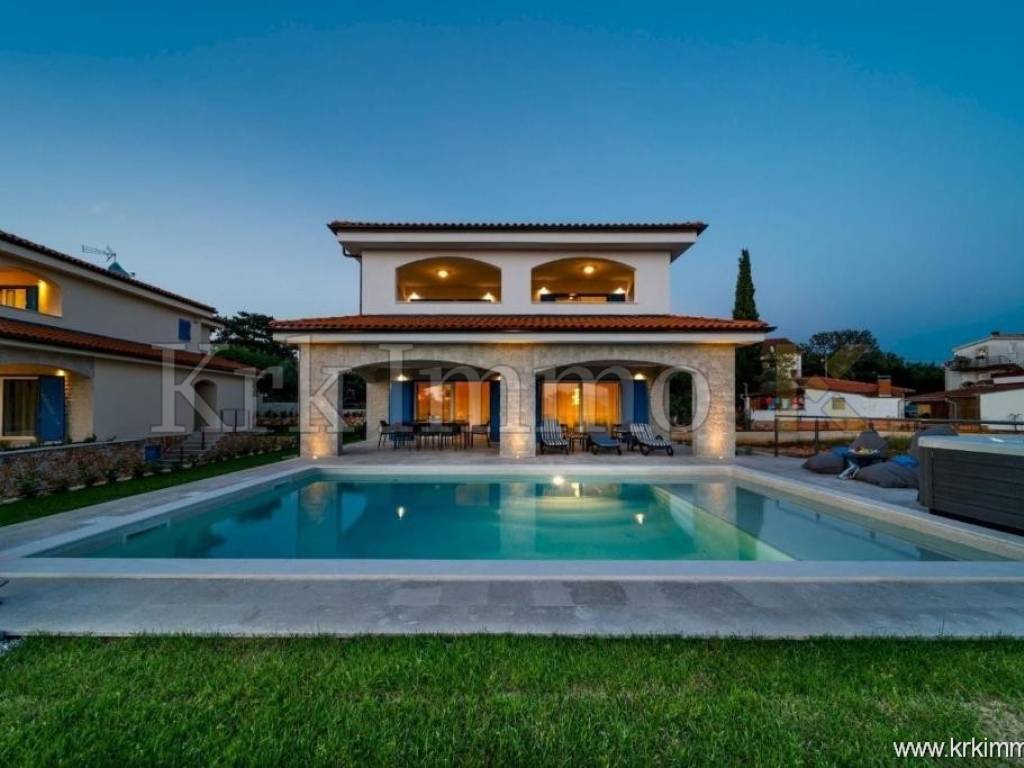 For sale is a luxurious detached house – a combination of modern design and Mediterranean charm, located in a peaceful environment near Malinska. This elegant Mediterranean villa with a total of 320 m² of living space is spread over three floors and represents the perfect balance between comfort, functionality and aesthetics.