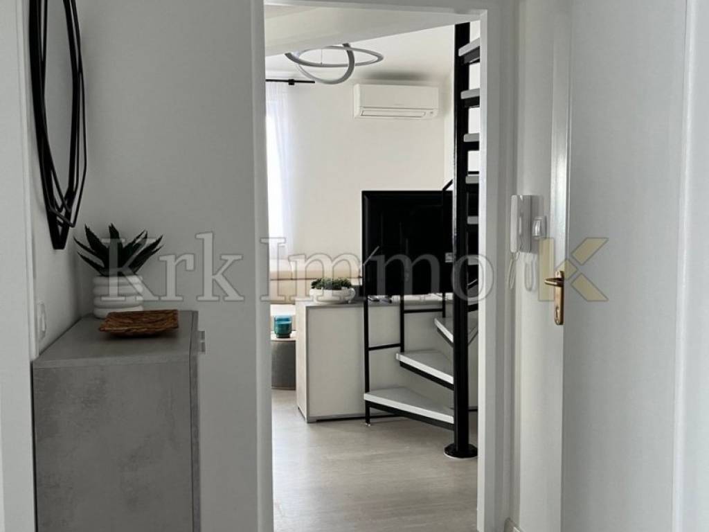 For sale is a modern, newly renovated apartment in Malinska on the island of Krk – a perfect blend of functionality, aesthetics, and an attractive location. Situated on the second floor of an apartment building, the unit has 47 m² of living space with a well-thought-out layout: hallway, spacious bedroom, bathroom, kitchen, and living room with access to a covered balcony. From the balcony, there is an open sea view, making this property especially desirable. An internal staircase leads to a gallery with an additional bedroom, increasing the usable floor area to 65 m².