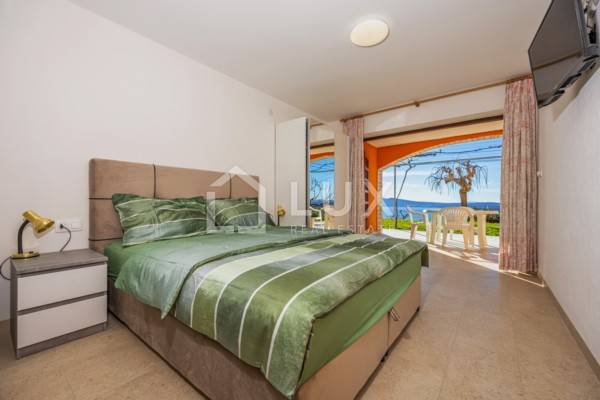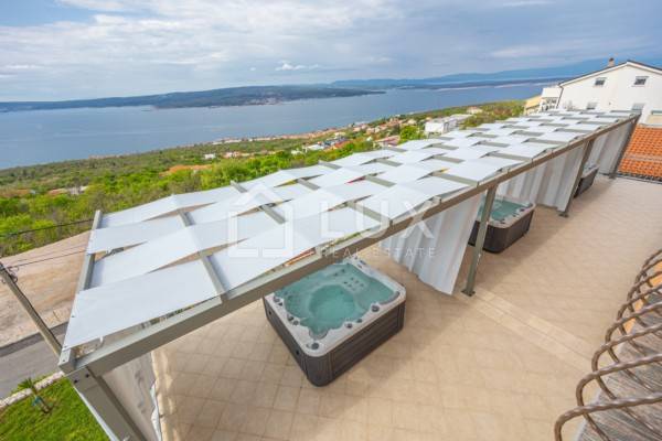 The apartment complex is surrounded by a large olive grove and Mediterranean plants and a beautiful view of the entire Kvarner Bay and the island of Krk. Parking for a car is provided in front of the villa.