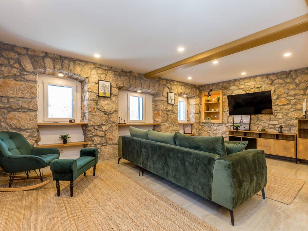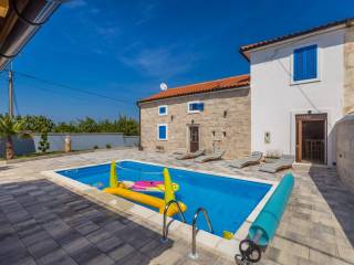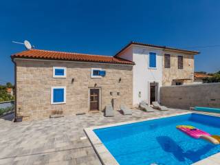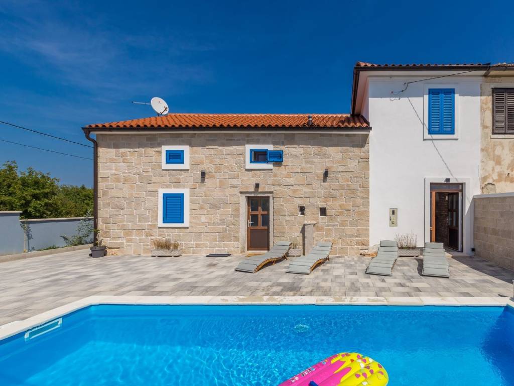 In the vicinity of Dobrinj on the island of Krk is this attractive semi-detached stone house that combines tradition and modern comfort. It is located a few kilometers from the sea, with good access to main roads and amenities. The ground floor offers an open living space that includes a kitchen, dining room and living room with access to a terrace with a swimming pool, sundeck and covered area with barbecue, ideal for gatherings and enjoying the outdoors. This floor also houses a bathroom and a tavern. Upstairs there are three comfortable bedrooms, each with its own bathroom, providing a high level of comfort for the owners and guests. The house is equipped with underfloor heating and air conditioning, which allows for a pleasant stay throughout the year. The property also includes two parking spaces. Thanks to its attractive location and quality workmanship, this stone house represents an excellent opportunity for a family vacation, tourist rental or investment in an attractive part of the island of Krk. Contact us for more information and arrange a viewing!