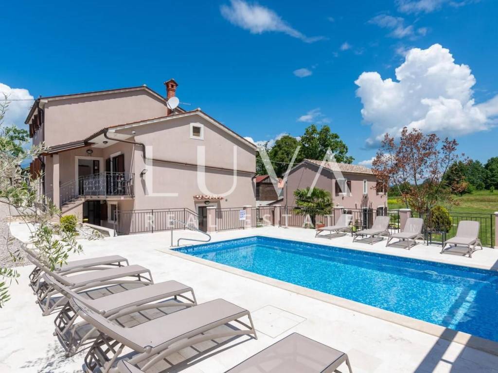 In the heart of green Istria, near the picturesque village of Pićan, lies this idyllic estate that perfectly combines natural serenity, authentic architecture, and modern comfort. Situated on a gentle hillside and surrounded by lush greenery, the property covers 5,000 m², offering absolute privacy and a sense of complete relaxation. The estate consists of three beautifully restored stone houses, a large swimming pool, and a professional tennis court – an ideal retreat for family holidays or a prime investment opportunity in the tourism sector.
