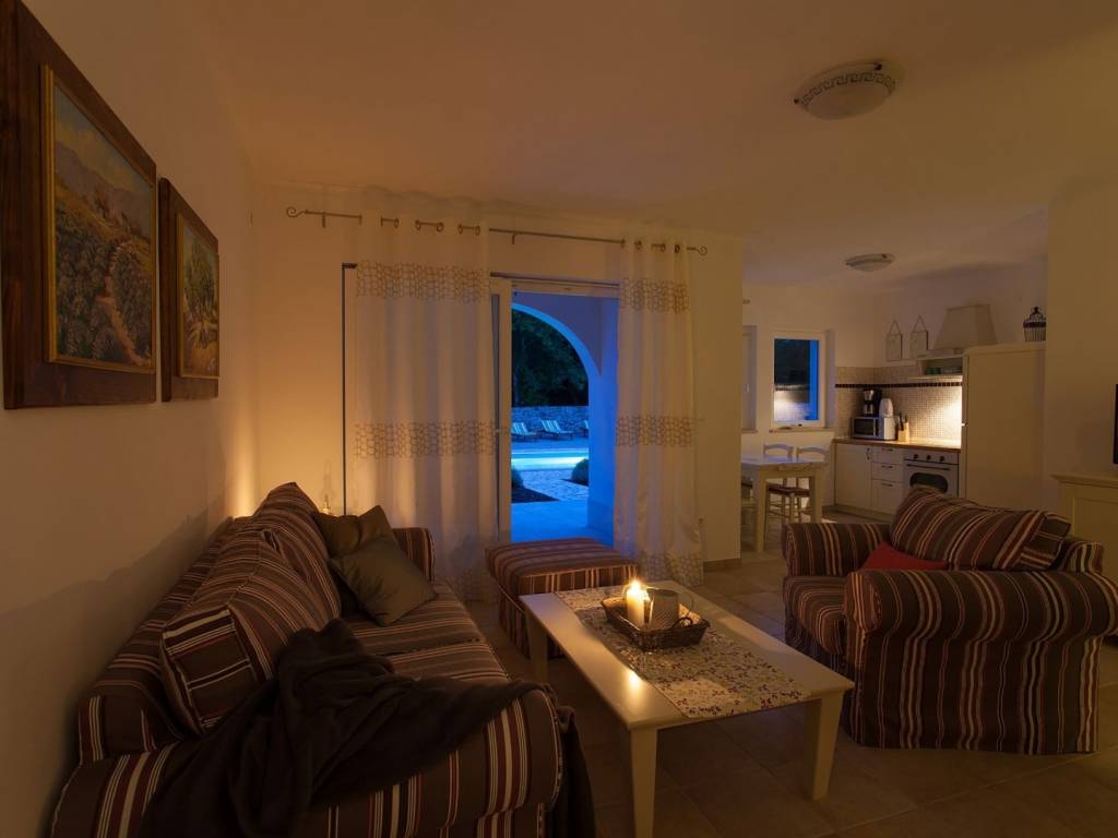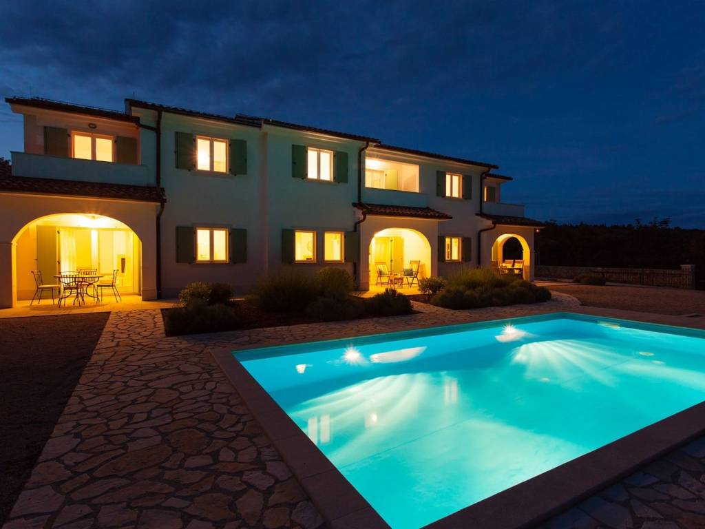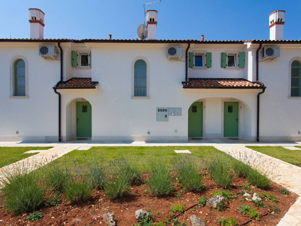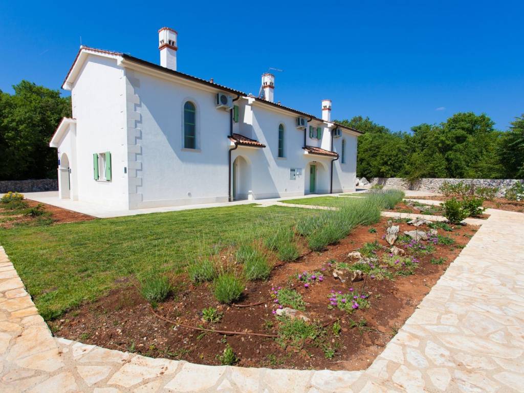 In the heart of a quiet place on the ISLAND OF KRK, in the municipality of Dobrinj, there is a unique property offering three separate residential units with a private pool, ideal for a family vacation, tourist rental or investment. The houses are built in a row, each on two floors, with separate entrances for maximum privacy. Two units have an area of 80 m2, while the third has as much as 95 m2. On the ground floor there is a modern kitchen with a dining room, a living room and a bathroom. The living area leads out onto a covered terrace perfect for relaxing. A special atmosphere is created by the fireplace located on the ground floor of each unit. On the first floor there are two comfortable bedrooms, an additional bathroom and a balcony with a beautiful view of the untouched nature and greenery of the island's interior. A special advantage of this property is the spacious garden of about 1700 m2, on which there is a shared swimming pool with a furnished sunbathing area, an outdoor shower, a barbecue, a children's playground and several parking spaces. The entire property exudes peace, privacy and an authentic Mediterranean atmosphere. A perfect opportunity for those looking for a quiet location on Krk with multiple possibilities of use. Contact us and arrange a viewing of this special property!