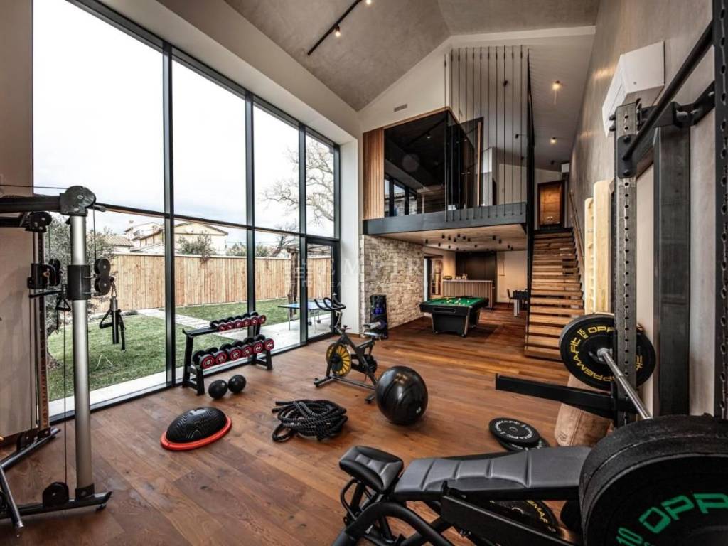 The property includes 2 saunas, 2 large pools, a gym, a billiard table, 5 fireplaces, a bread oven, electric vehicle chargers, underfloor heating in all rooms – all part of this flawless landscape.