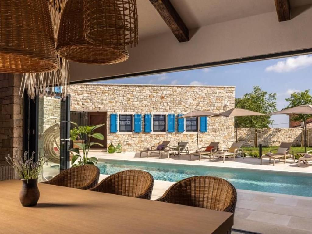 In the vicinity of Kanfanar, 20 minutes from Rovinj, these beautiful stone villas are located in a peaceful area, with a total built-up area of 1321 m² on a plot of 2893 m².
