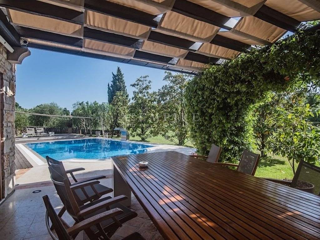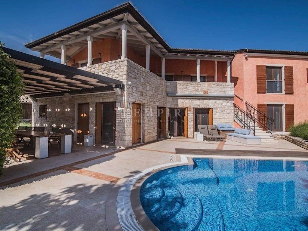 A luxury stone house with a spacious green garden is located in a quiet village near Rovinj.