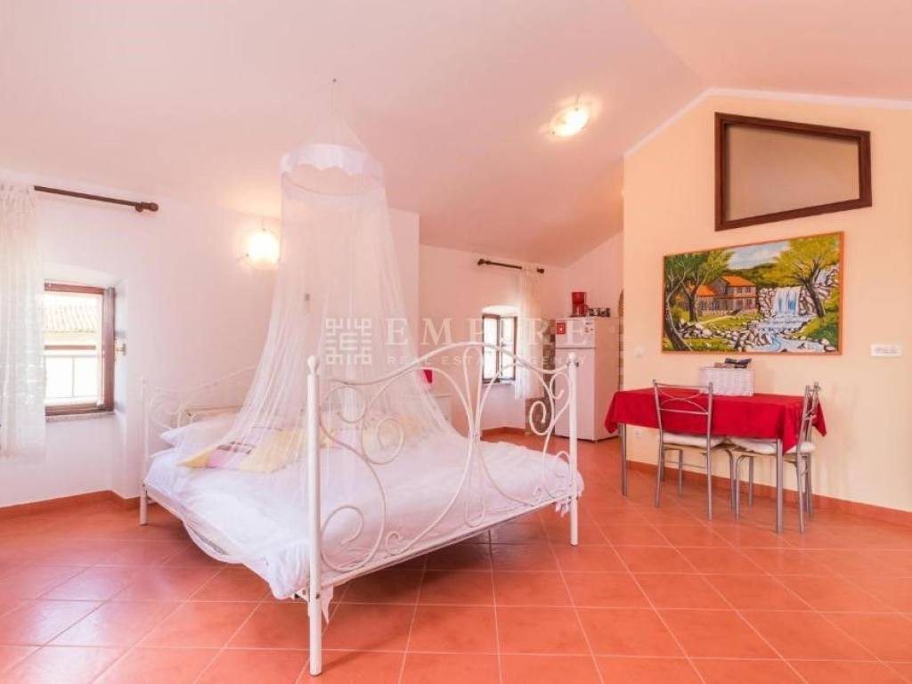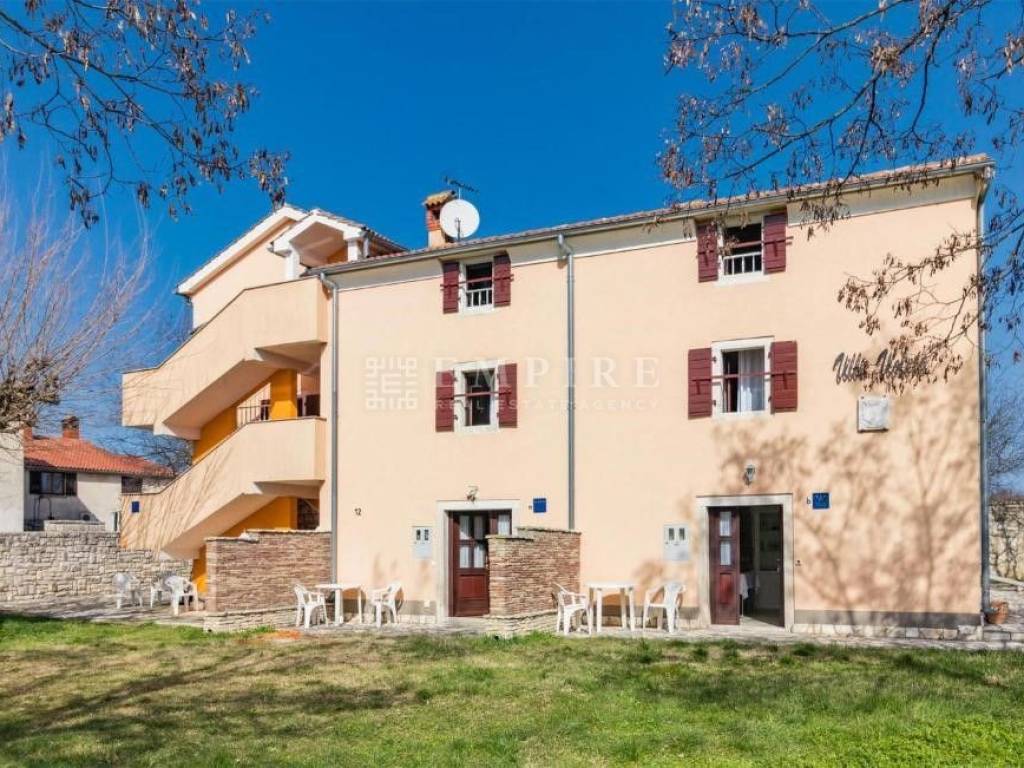 This holiday home is located near Rovinj, just 10 km from the sea. The house was newly built around ten years ago, on the edge of the construction zone. It is spread over three levels on a 360 m² plot, with a house area of 235 m². The house includes a separate socializing area, 2 studio apartments, and two separate units that each function as a holiday home. Each house has the possibility to build a pool if needed. The ground floor features a sunbathing area in a very intimate atmosphere with a beautiful view of the Istrian flora. The property is fenced and landscaped. Heating and cooling are provided by air conditioning. The estate is perfect for a true getaway and isolation from city noise, while also ideal for renting out during the summer months.
