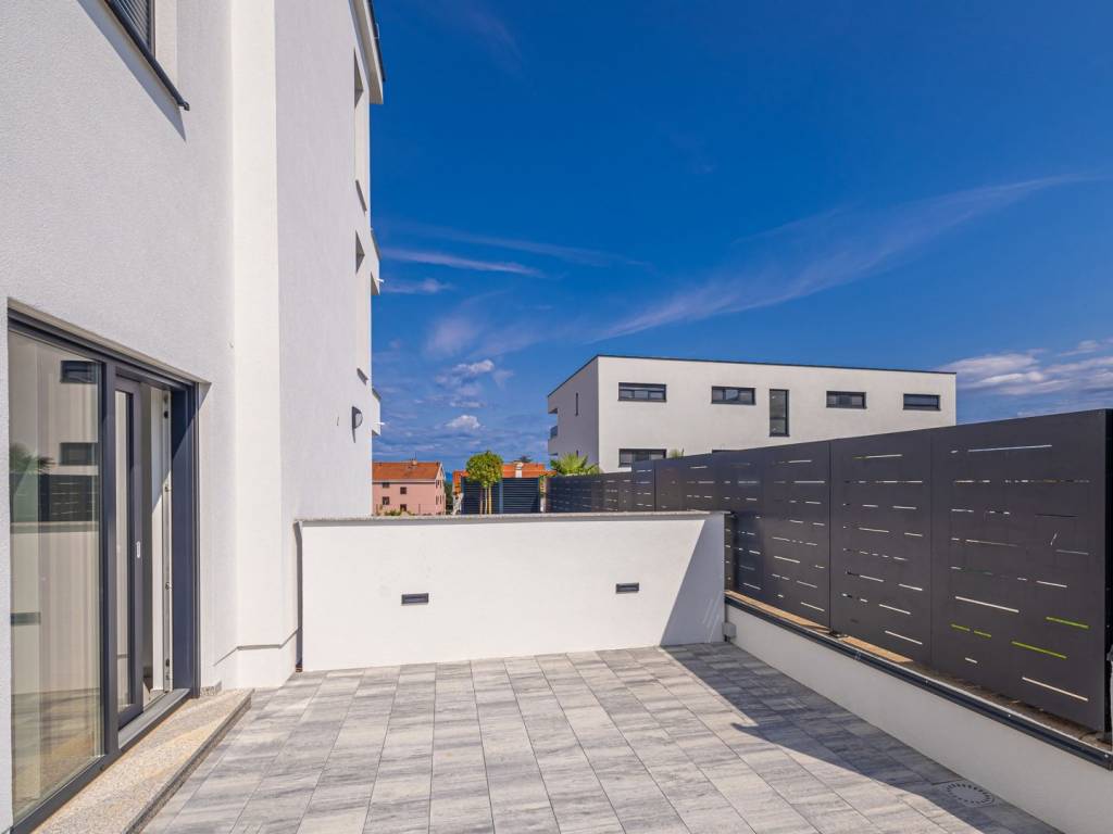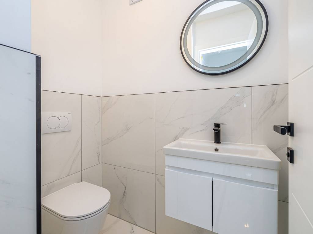 In a quiet part of Malinska, within a quality new building, two separate apartments are for sale, ideal for vacation, living or investment in tourist rental. Both units feature a contemporary design, functional layout and excellent location. The ground floor apartment has one bedroom, a modern bathroom and a pleasant living room with a kitchen and dining room in an open concept. The living room opens onto a private, landscaped garden with a jacuzzi - the perfect place to relax outdoors. The second apartment is located on the second floor and spreads over a spacious floor plan with two bedrooms, two bathrooms, an open-space living room, kitchen and dining room. A large covered terrace with a panoramic view of the sea gives it special value - ideal for enjoying sunsets and the Mediterranean atmosphere. The apartment also has two parking spaces. The building is VAT registered, which makes this offer particularly attractive for investors. Each apartment has a separate entrance and can be rented as a separate unit.