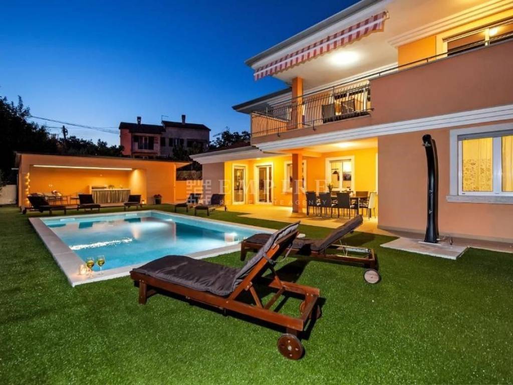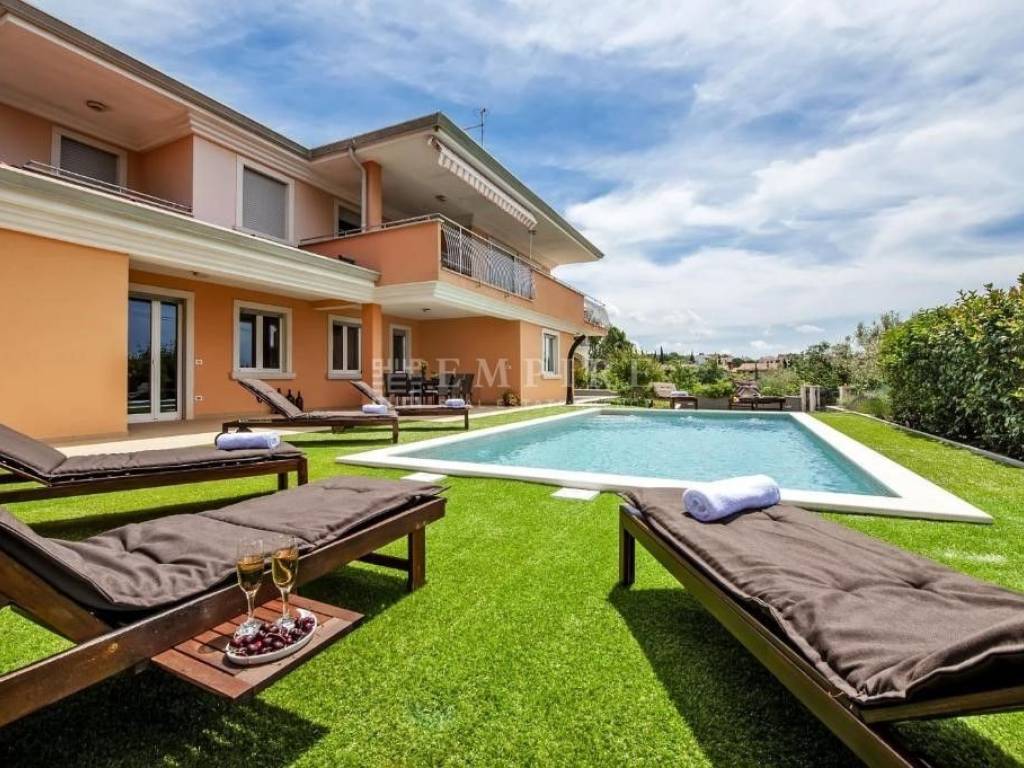 In a peaceful neighborhood near Rovinj, this luxurious villa is situated on a 1719 m² plot, with a total living area of 550 m².