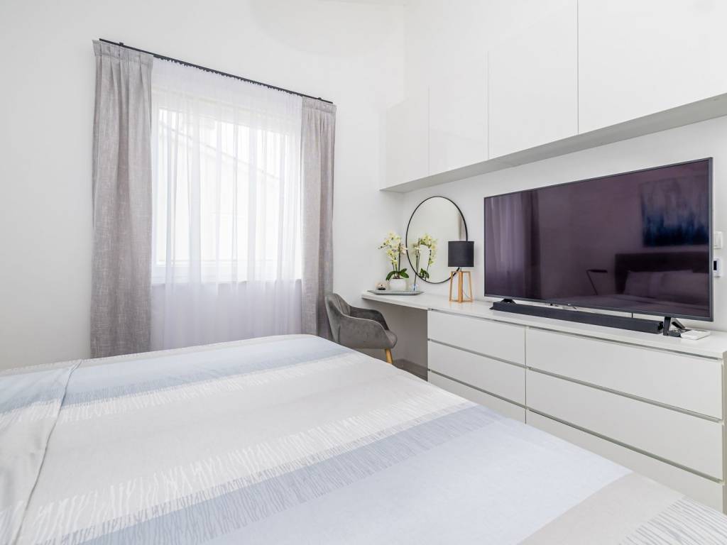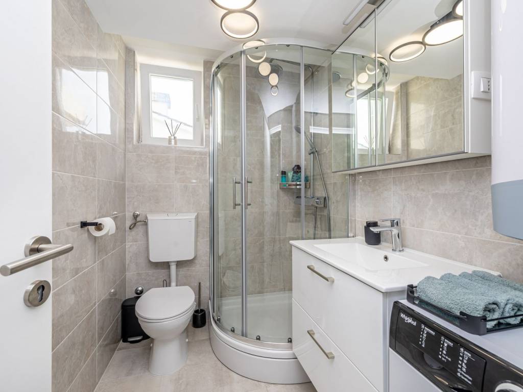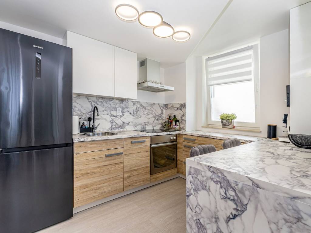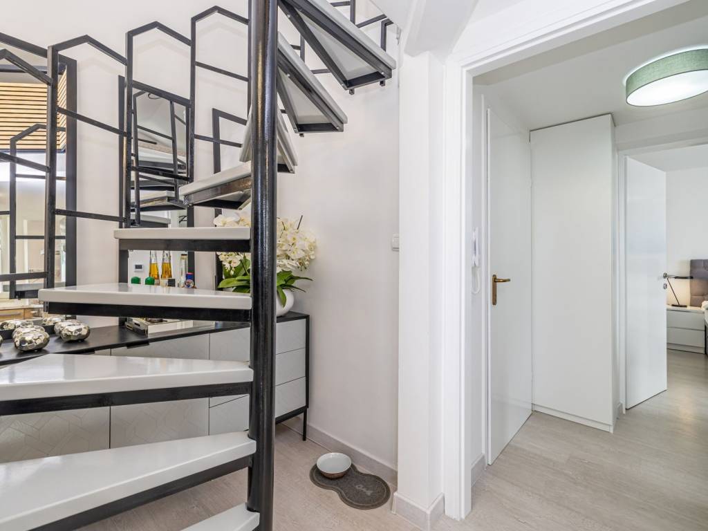 In a quiet part of Malinska, a two-story apartment is for sale that combines the comfort of modern design and an attractive location with a sea view. The apartment consists of an entrance hall, a kitchen connected to the living room, and a bedroom and bathroom on the ground floor. The living room opens onto a spacious terrace with a beautiful view of the sea, perfect for relaxing and socializing. Internal stairs lead to the gallery where an additional bedroom is located, which gives the space a special charm. The property is completely renovated, modernly decorated and functionally equipped. The apartment has one parking space in the yard, and thanks to electric underfloor heating, it is ideal for a pleasant stay throughout the year. This property is an excellent opportunity for a personal vacation, but also as an investment for tourist or long-term rental.