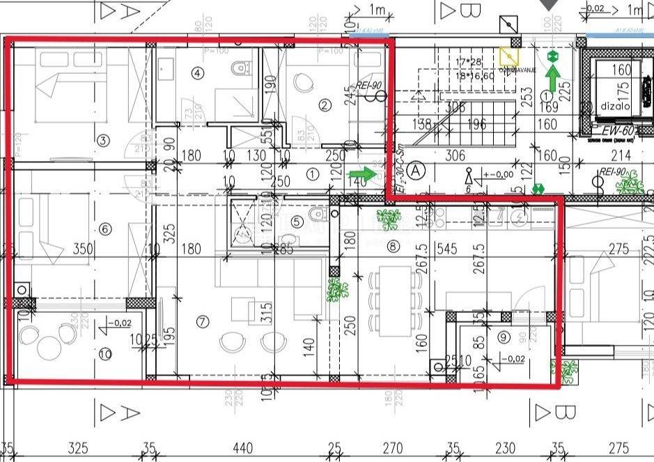 Presenting a new construction with an elevator, consisting of a building with 11 apartments. The floor plan of the 1st, 2nd, and 3rd floors is identical, with three apartments on each floor, while the ground floor has two apartments. Each apartment comes with two parking spaces, and the entire building is heated with electric underfloor heating. High-quality PVC Gealan 9000 triple-glazed windows have been installed, and the first phase of air conditioning is planned. The construction is expected to be completed by July 1, 2025.