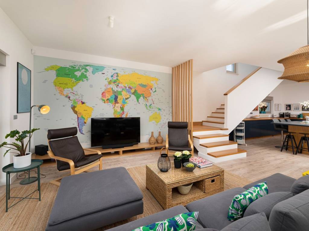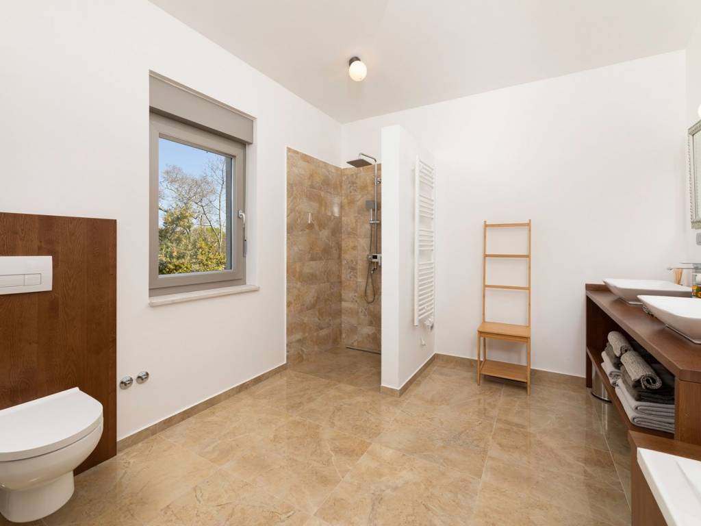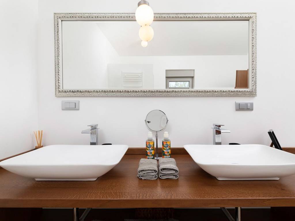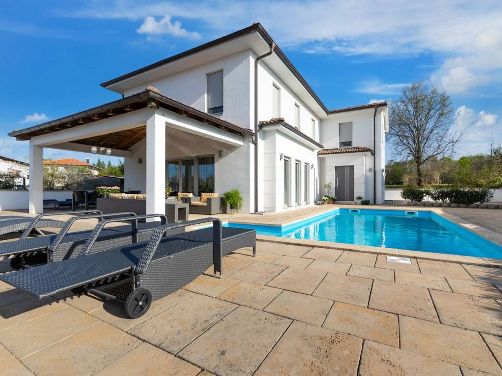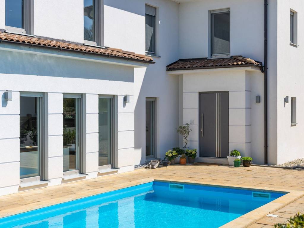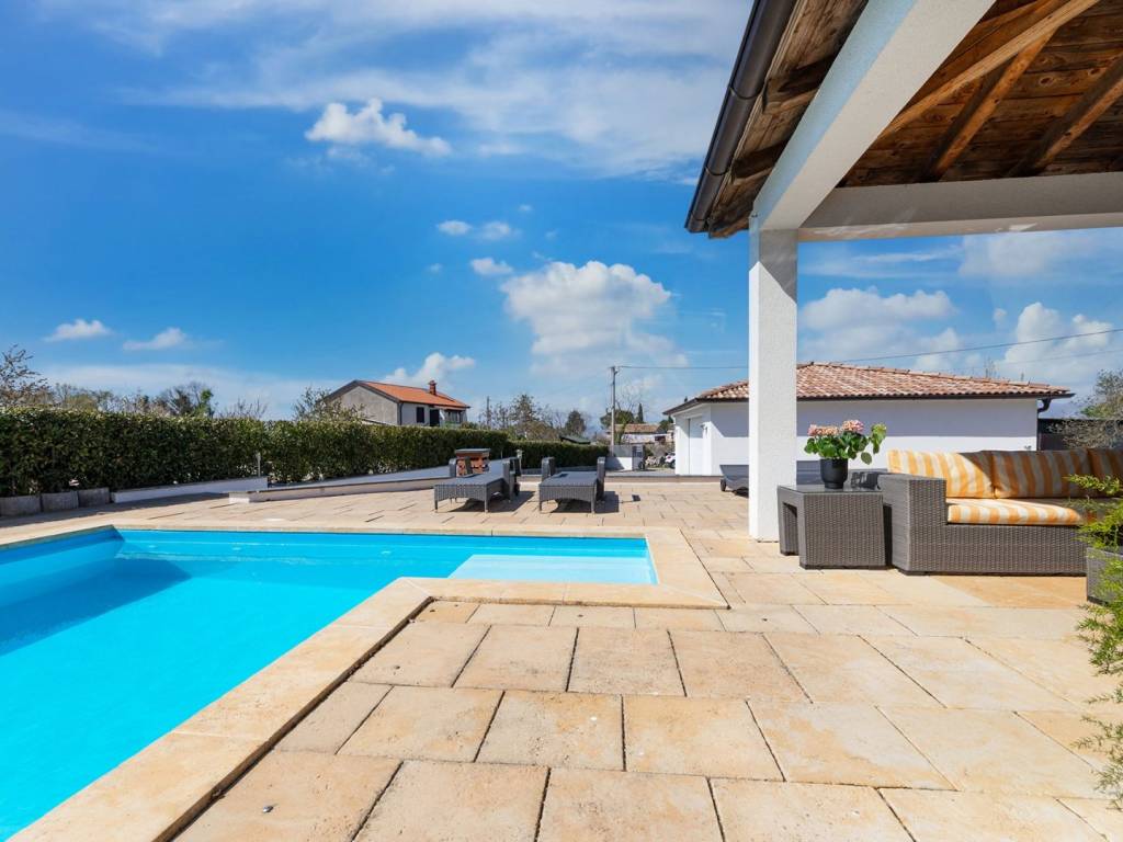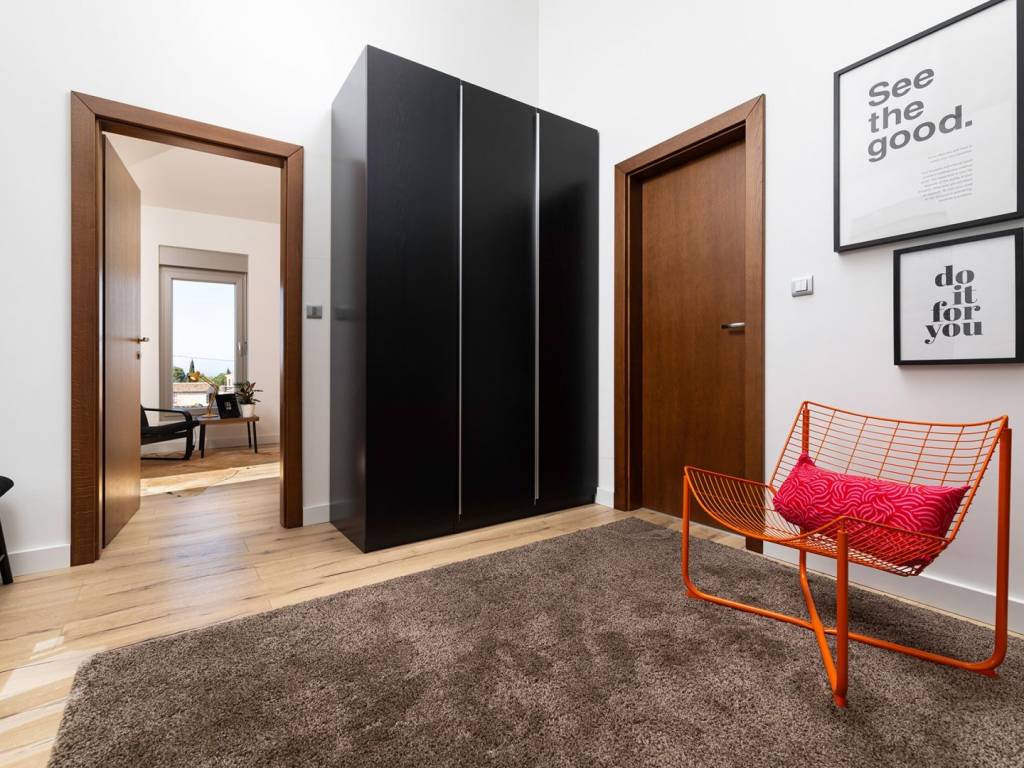 In a quiet part of the interior of the island of Krk, where greenery and silence create an ideal atmosphere for relaxation, this elegant and fully equipped modern house with a swimming pool is located - the perfect combination of comfort, style and discreet luxury. With a total of 284 m² of living space, the house extends over two floors with a carefully designed layout. The ground floor offers a bright entrance area, a functional bathroom, an additional room ideal for a study or private hobby space, one comfortable bedroom and the central part of the home - a spacious living room with comfortable seating, rustic details and large glass walls that open up the space to the covered terrace and swimming pool. The open floor plan connects the living room with a modernly decorated kitchen and dining room, creating the perfect space for socializing and family moments. Upstairs there are three airy and carefully decorated bedrooms, each with its own atmosphere, and two elegant bathrooms that provide comfort for the whole family or guests. The outdoor area exudes peace and privacy – the fenced garden of 850 m² is tastefully decorated without exaggeration, enriched with Mediterranean plants and details that create the ambiance of a luxurious summer house. In the center of the courtyard there is a swimming pool with clean lines, surrounded by a spacious sunbathing area and a lounge area under a gazebo – ideal for summer gatherings, evening relaxation or quiet breakfasts outdoors. There is also a barbecue area and a garage with two covered parking spaces. The house is fully air-conditioned with an advanced Daikin system, equipped with a full alarm system, a fireplace and built to a high standard of finishing – ceramics, parquet, PVC joinery and contemporary interior design leave the impression of a home that is both sophisticated and comfortable. The A+ energy certificate further confirms the energy efficiency of this modern villa. With a distance of only 3 kilometers from the sea and urban amenities, this property offers the perfect combination of solitude and connectivity. Whether you are looking for a quiet family home, a weekend oasis or an attractive high-end tourist rental property – here you get more than just a property: you get an experience.