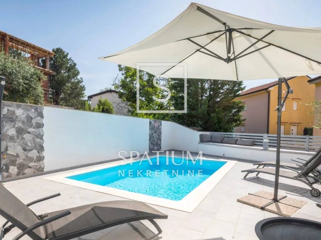 SOLINE, we offer a two-story apartment with a swimming pool only 100m from the sea. It consists of a ground floor where there is a living room with a kitchen and dining room, a toilet and a bedroom with a shower. Internal stairs lead to the first floor where there is a large bathroom, two bedrooms and a living room with a kitchenette and a terrace with a beautiful view of the sea. It has two parking spaces and a covered terrace with a barbecue. Dobrinj is a settlement and municipality in Croatia. It is located in the Primorje-Gorski Kotar County on the northeastern part of the island of Krk. The municipality of Dobrinj includes a large part of the eastern coast of the island of Krk, facing Crikvenica and Vinodol on the mainland, with which it has always been closely connected. The coast is indented, but apart from the reef and rocks there is only one islet - Školjić Veli. On the coast, the shallow cove of Soline, almost a lake, with low shores on which three settlements are located: Klimno, Soline and Čižići stands out. Other, significantly smaller bays are: Stipanja, where the largest municipal settlement Šilo, Petrina, Veterna, Murvenica, Jazbina, Lončarica and Slivanjska are located. For all other information, contact an agent with confidence. Jana Hodak licensed agent 098/1671-888 jana@spatium.hr Spatium nekretnine +385 51 272 903 info@spatium.hr