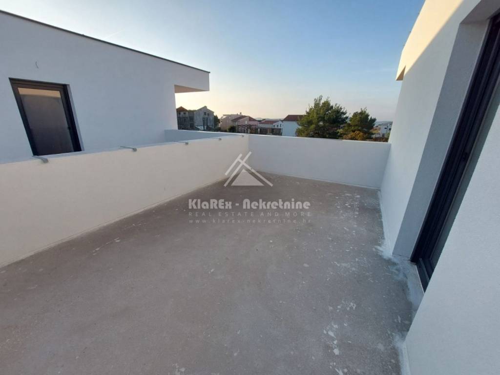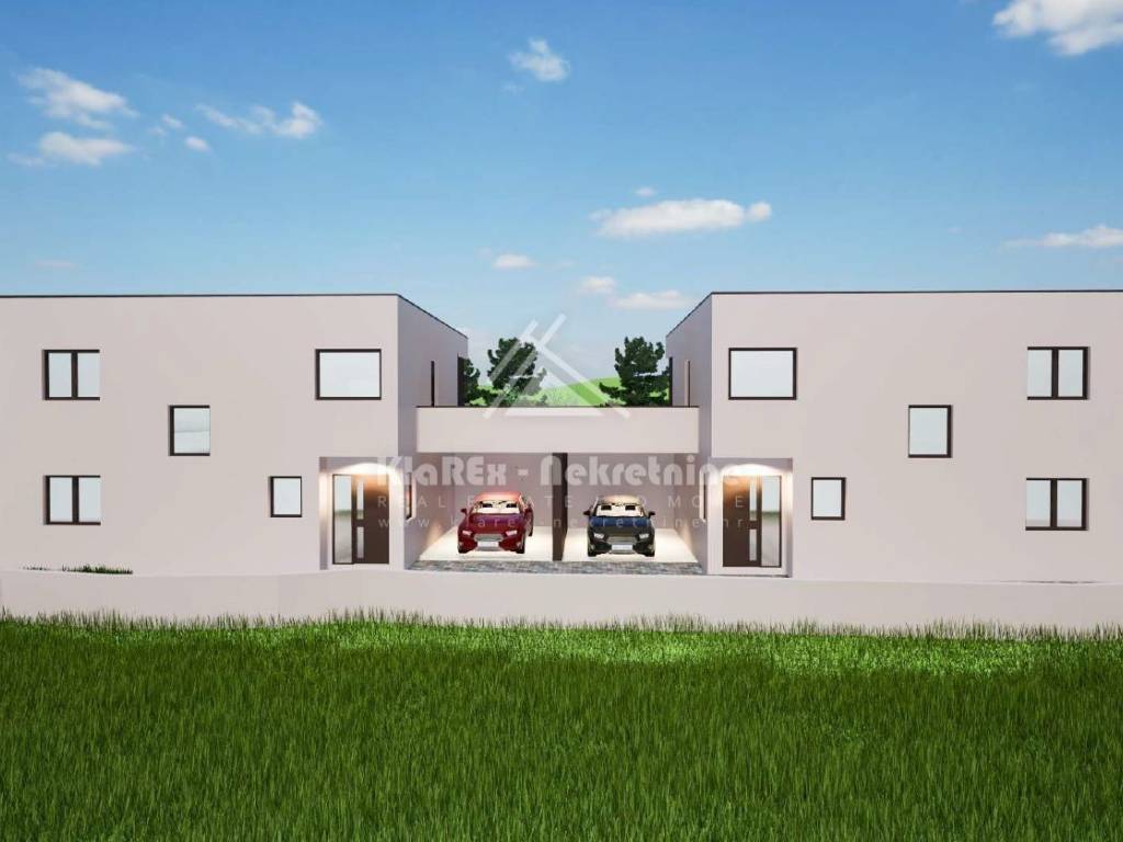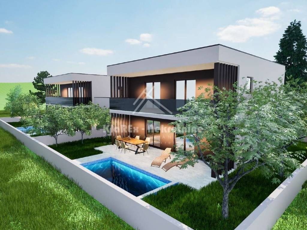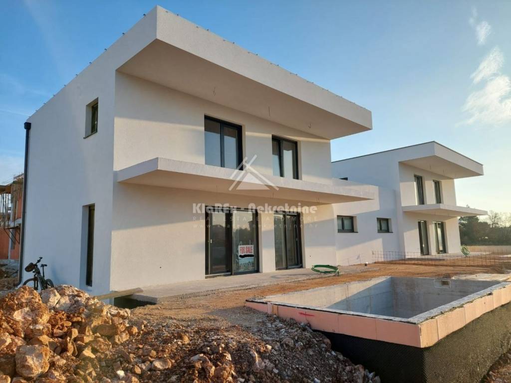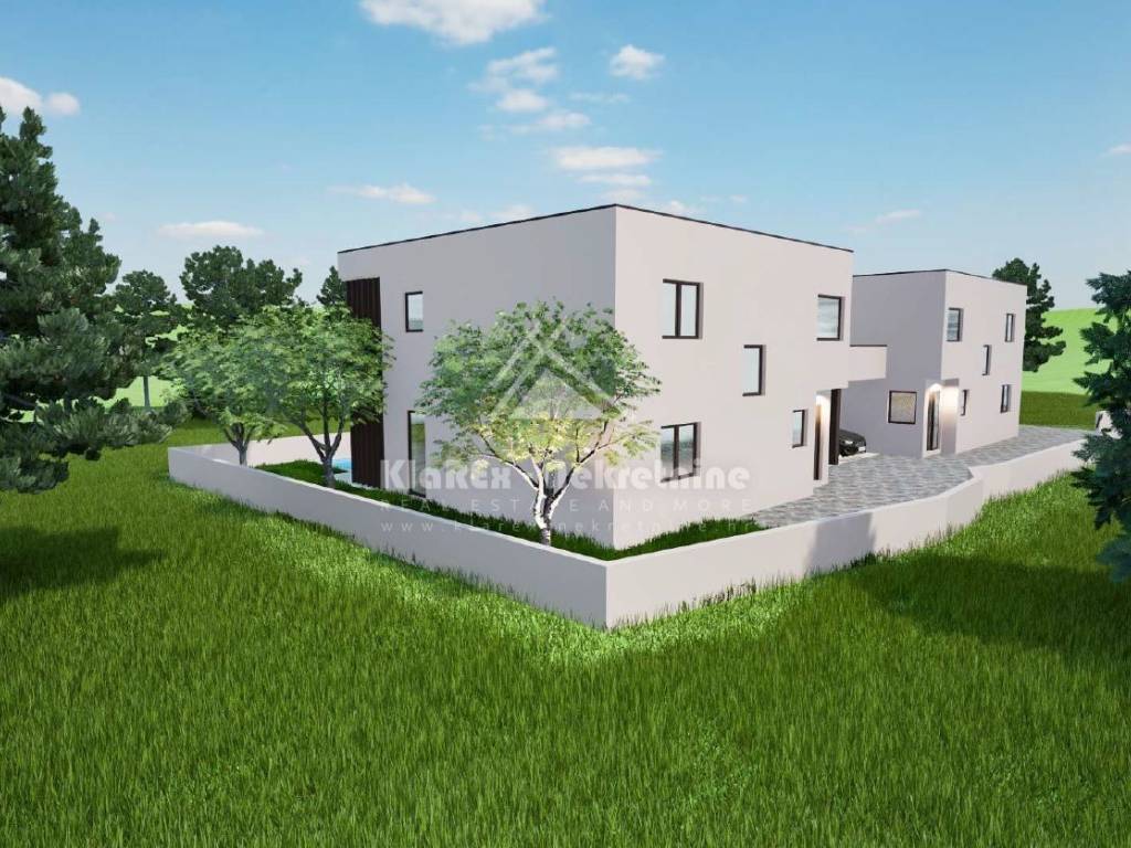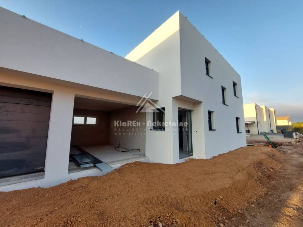 Two semi-detached houses with a garage and a swimming pool are for sale in Vodice. This is a new building, located about 850 meters from the sea, or the city center. The building is in the final phase of construction and now the interior and exterior decoration of the house are underway. A final building permit has been issued for this semi-detached property, and the project is expected to be completed and the house is ready for occupancy by spring 2026. High-quality materials and equipment are used in the construction and decoration, and it is worth highlighting: underfloor heating in the kitchen and living room, electric roller shutters, air conditioning in the living room and all rooms, etc. The position of the property provides access to all relevant amenities. Payment dynamics in agreement with the investor. The offer includes: