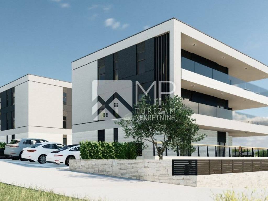 Two modern residential buildings, each containing three residential units, parking garages in the basement and outdoor parking spaces. The buildings are of one volume, elevated ground floor + two floors, and one basement floor. What we can especially emphasize is that everything is within easy reach (school, kindergarten, supermarkets) which is perfect for living, but also for tourism.