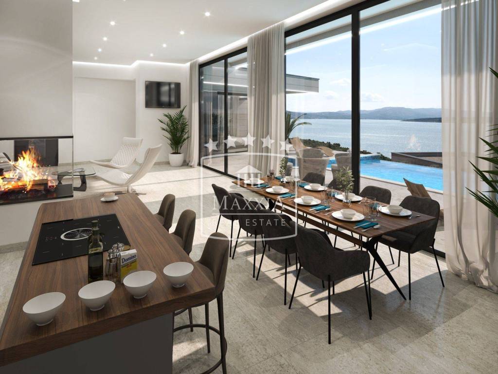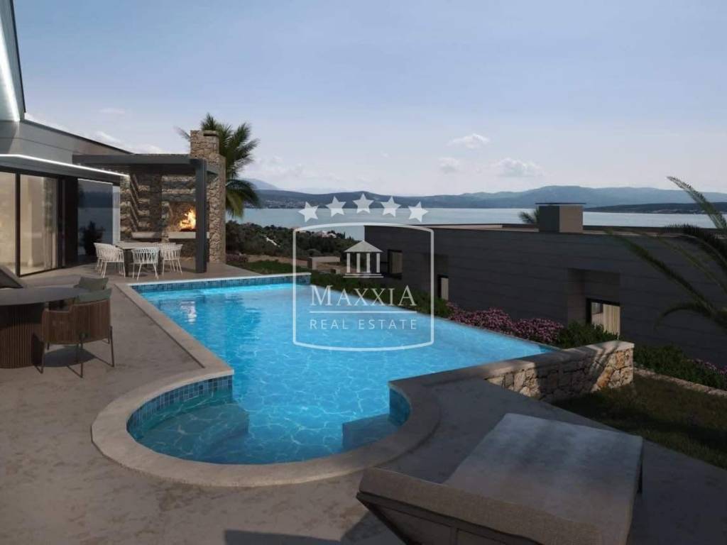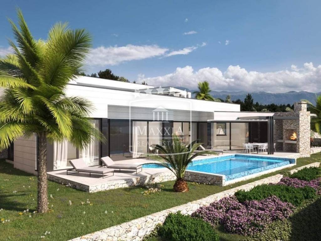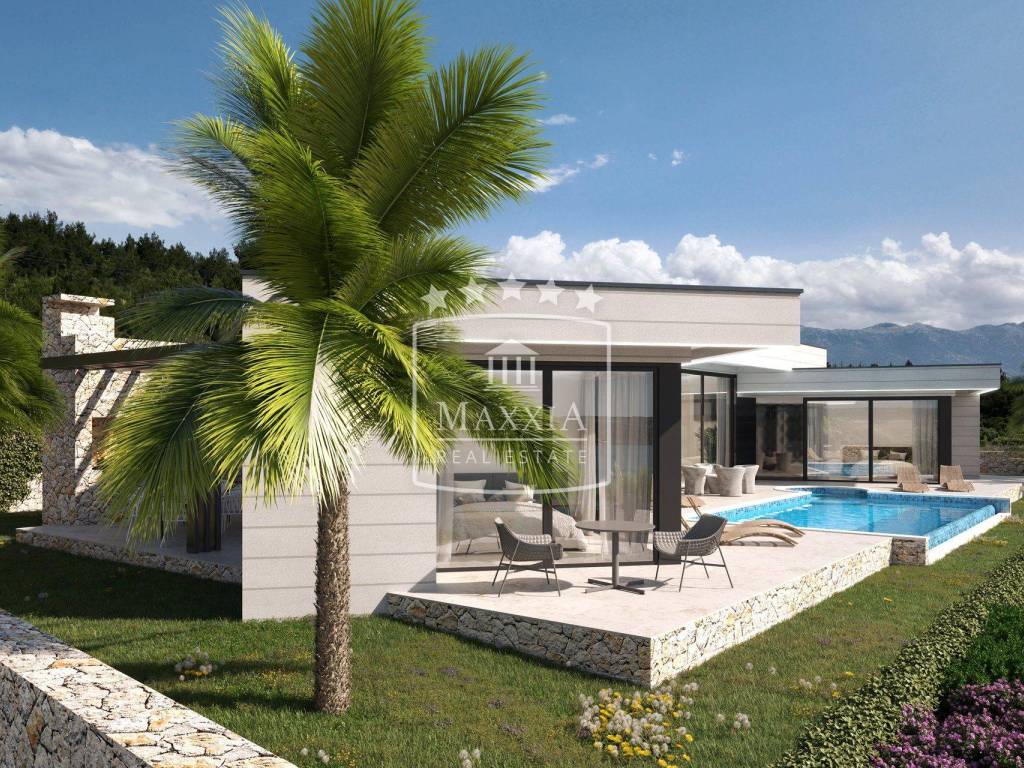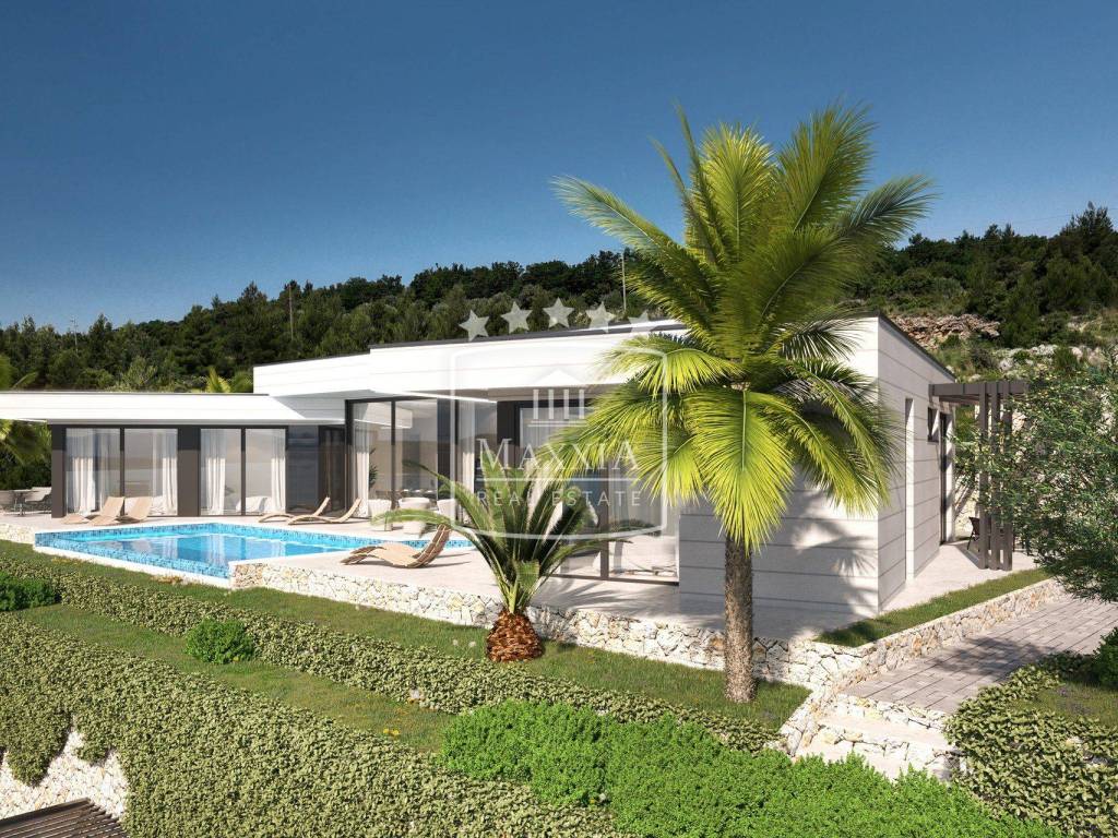 Under construction, planned completion by 05/2025. Modern, luxurious one-story stone villa with an open dominant view of the sea surface area of 204m2 located on a plot of land of 808m2. Unique location, rarity on the market!
