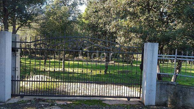 Parcela je kompletno ograđena betonskim zidom, kovanom ogradom i velikim kovanim kliznim vratima od 7 m. .