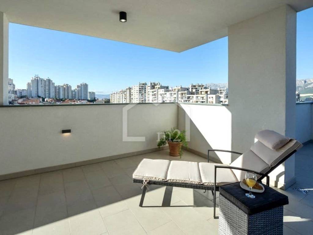 We mediate in renting a modern two-bedroom penthouse in a new building in a good location. It consists of two bedrooms, kitchen with dining room, living room with exit to the terrace of 40 m2 with a beautiful view of the city, and bathroom. The apartment is fully modernly equipped for a comfortable life and has one indoor parking space in the garage. The apartment is rented from 01.09.2025 to 15.06.2026 and can only be rented for a few months. Landlord pays the utilities.