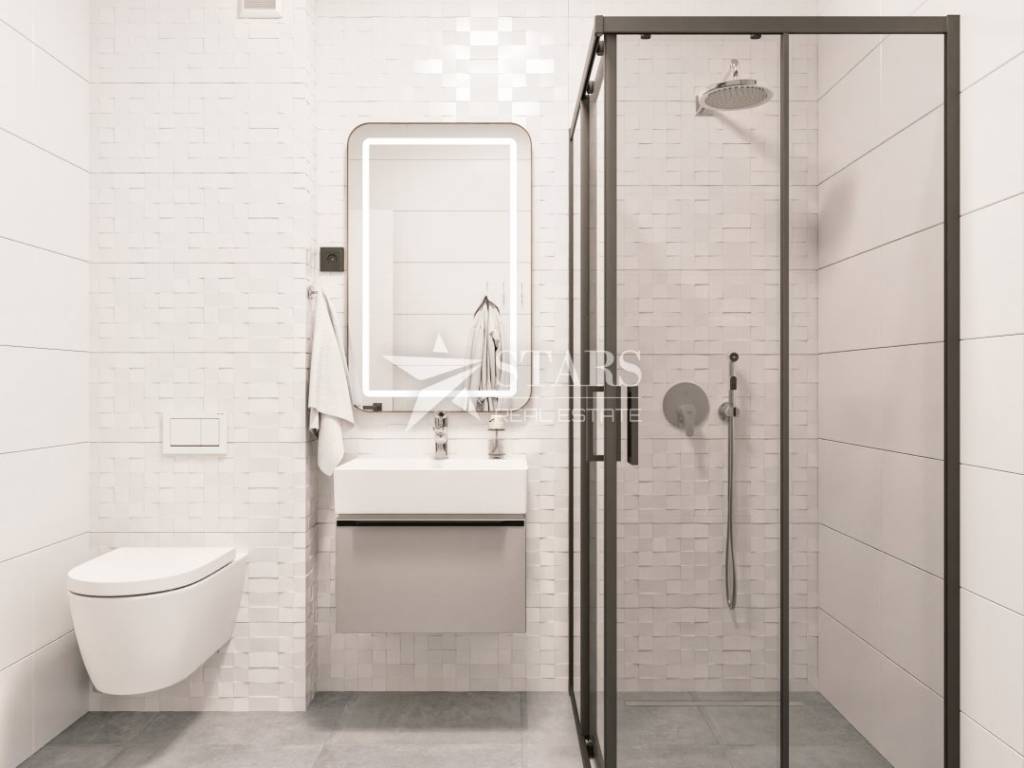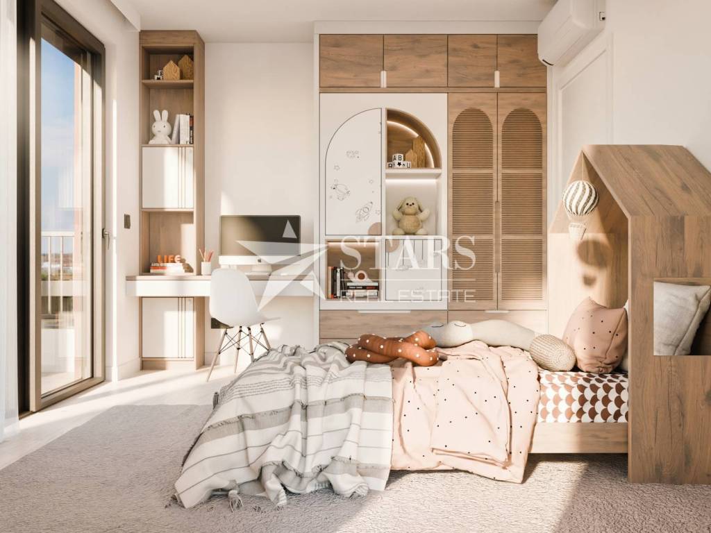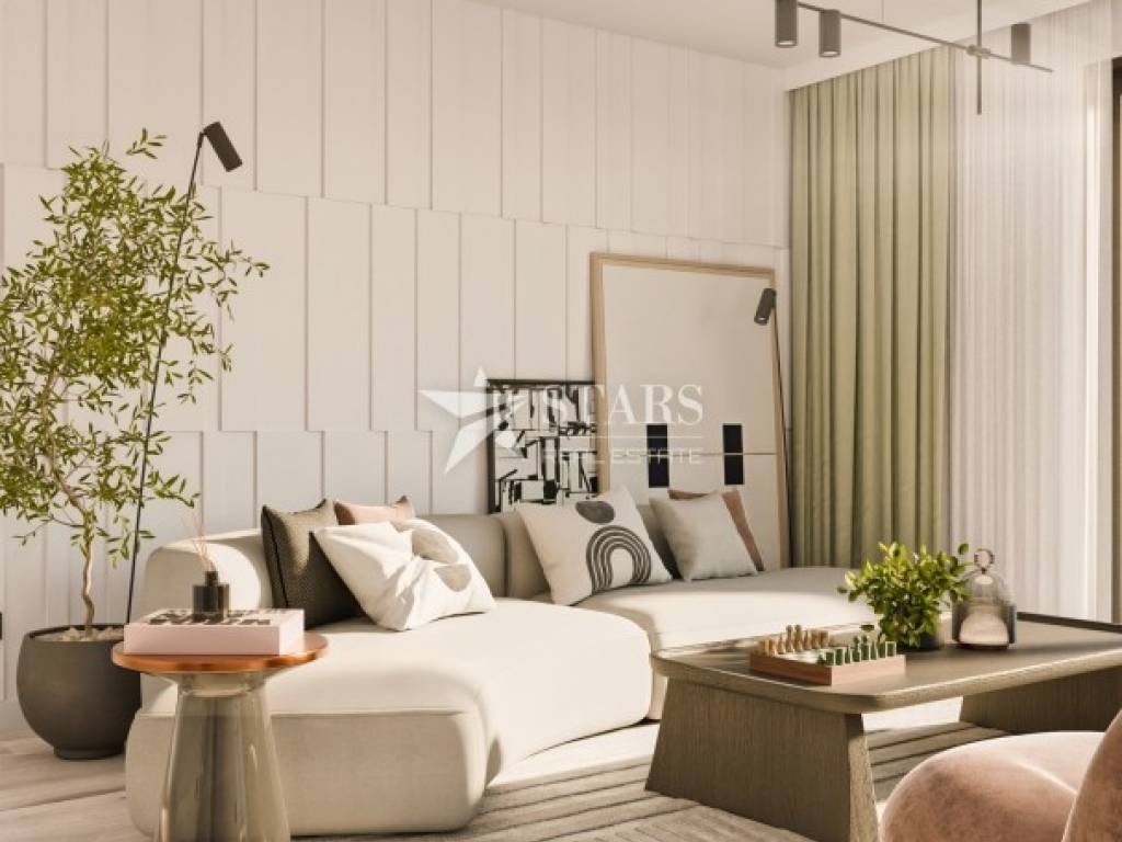 The apartment offers 86.64 m² of interior space with an excellent layout, featuring three bedrooms, two bathrooms, a large living room with kitchen and dining area, and access to a 26.50 m² balcony. This outdoor area acts as an extension of the living space, perfect for al fresco dining, sunbathing or enjoying a morning coffee with a sea view.