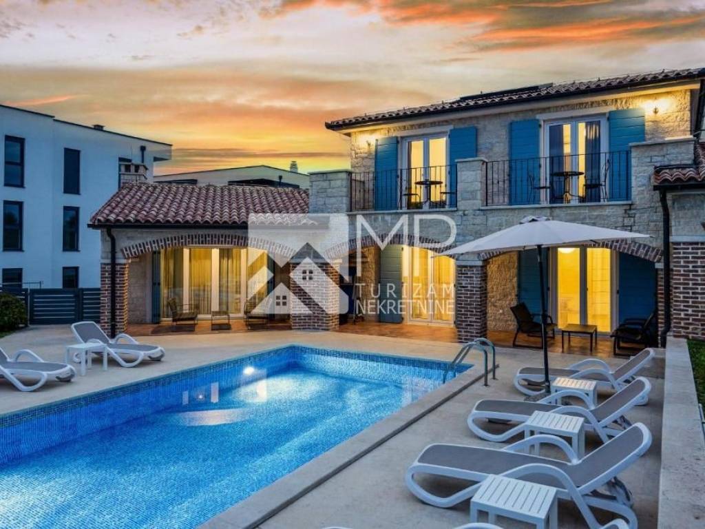 In Medulin, one of the most attractive tourist destinations in Istria, two luxurious semi-detached stone villas with private pools are for sale. They are located in a quiet location, surrounded by greenery, and only a few minutes' walk to the beach.