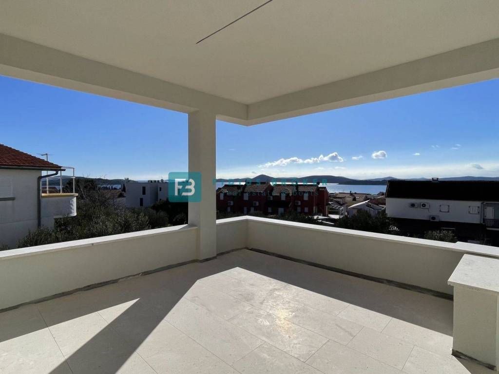 VODICE - For sale modern apartment with 2 bedrooms on the ground floor with a garden and sea view, 750 m from the beach and the center!