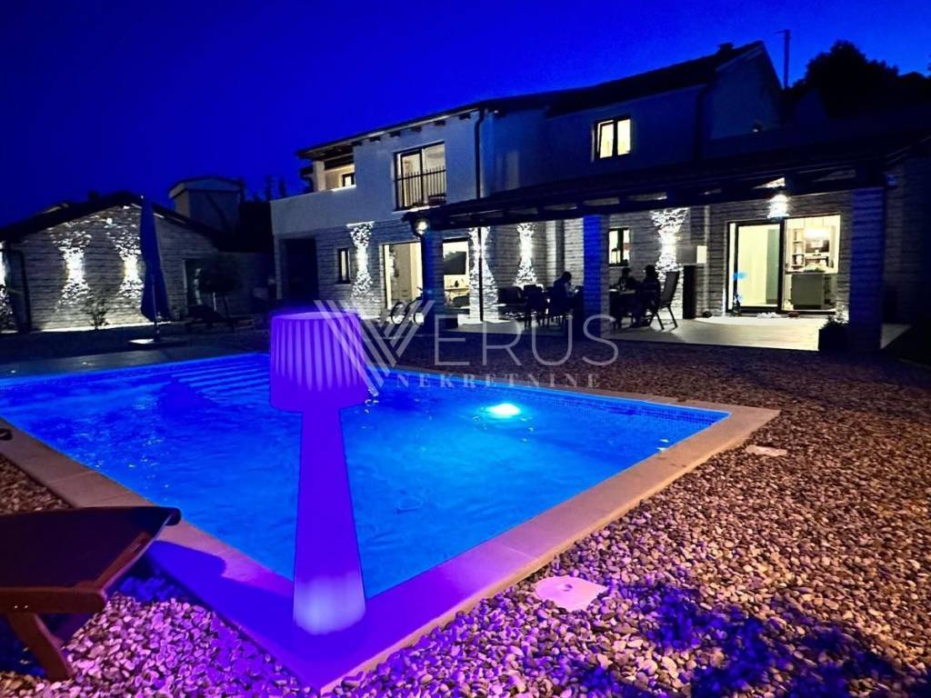 This elegant villa, made in a combination of Mediterranean and rustic styles, represents a perfect synergy of quality construction, carefully selected materials, and superb decoration. Located in a quiet location, yet close to all important amenities, it is the ideal choice for those looking for a luxurious private residence or a top investment for a tourist rental.