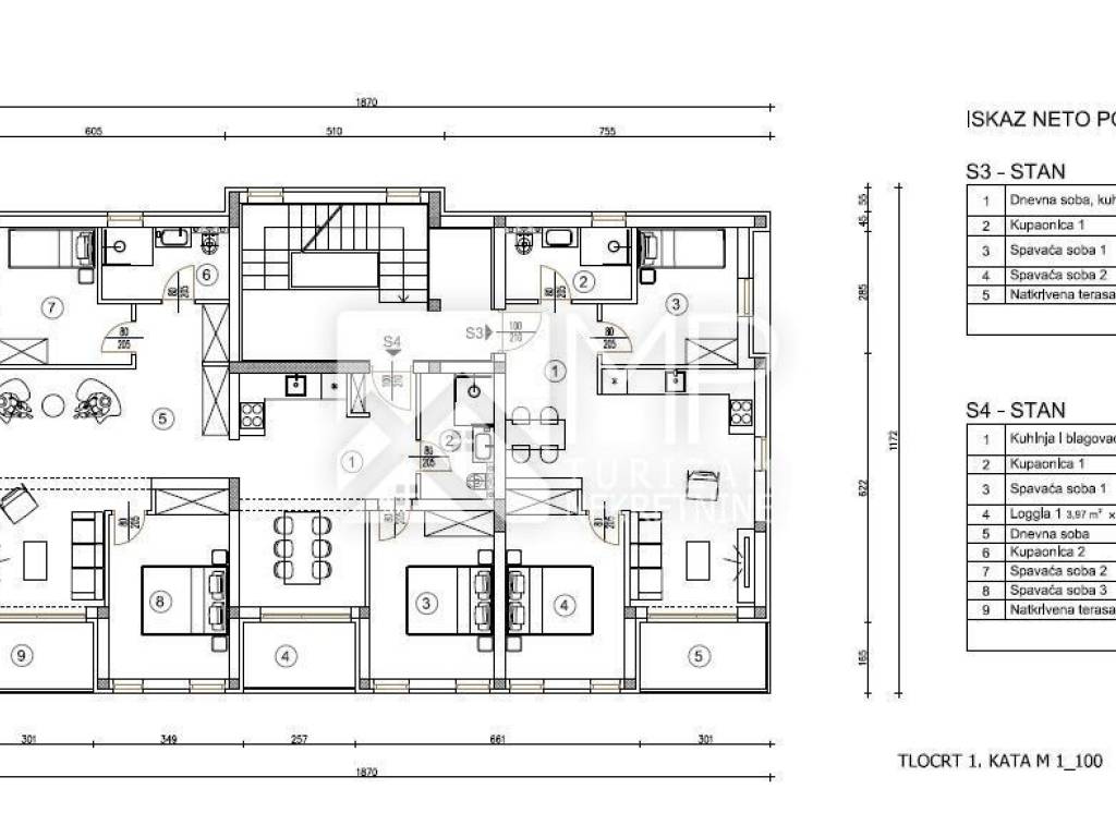 APARTMENT S4 - 1ST FLOOR, total net area of ​​93.10 m2.