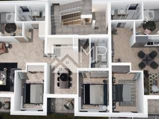 It consists of: living room, kitchen and dining room, three bedrooms, two bathrooms, loggia and covered terrace.
