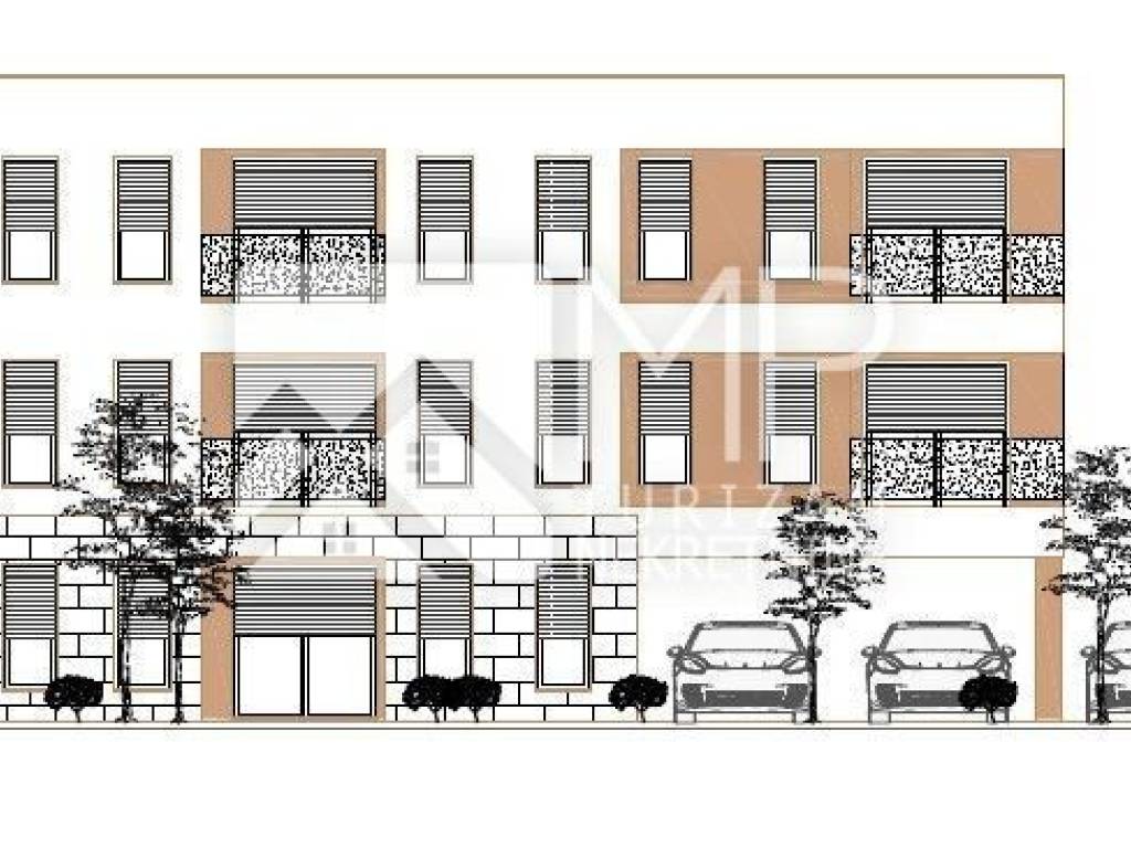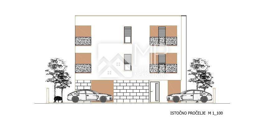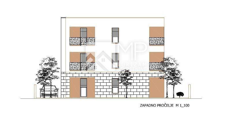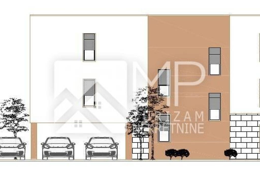 In the Monte Turco settlement, located in the immediate vicinity of the city of Pula, we present a modernly designed project, the construction of which will begin soon. It is a detached residential building with a total of 6 residential units distributed over the ground floor, first and second floors (2 apartments on each floor).