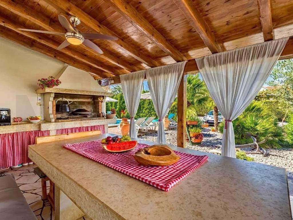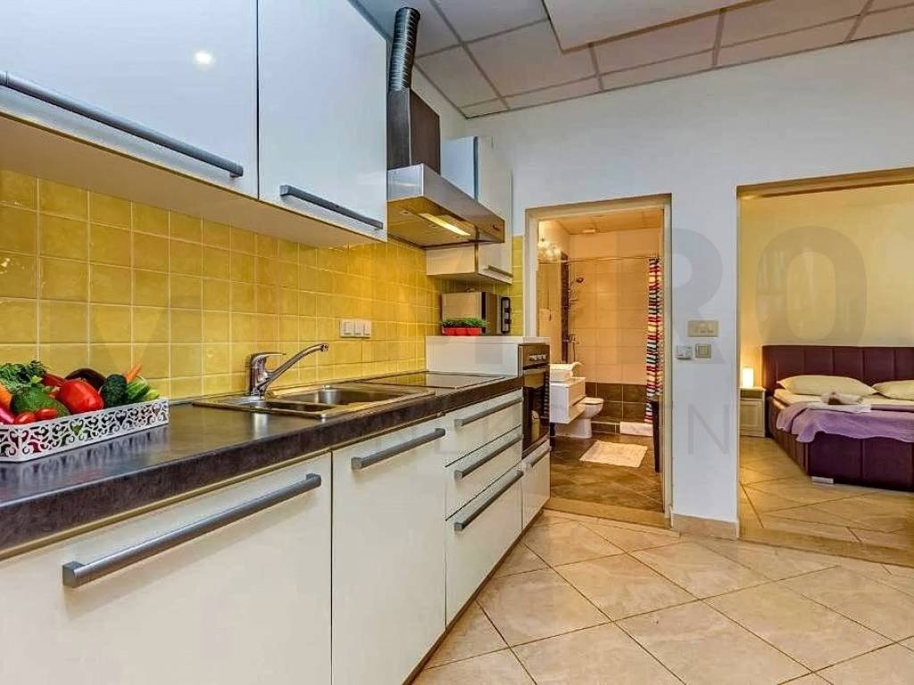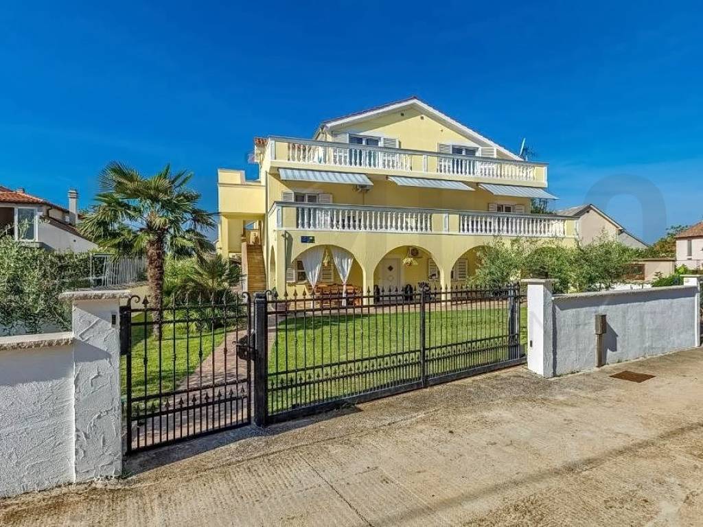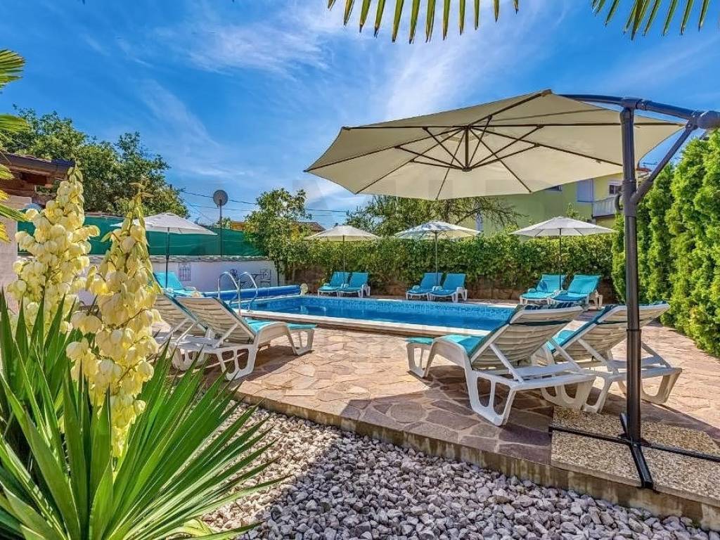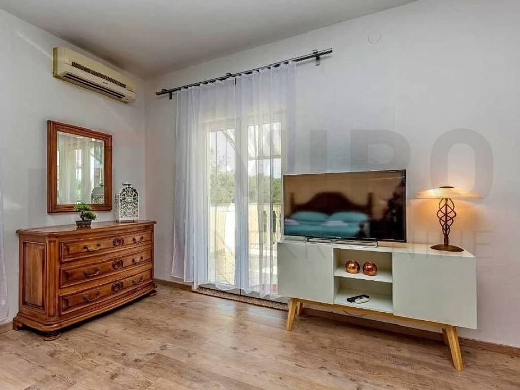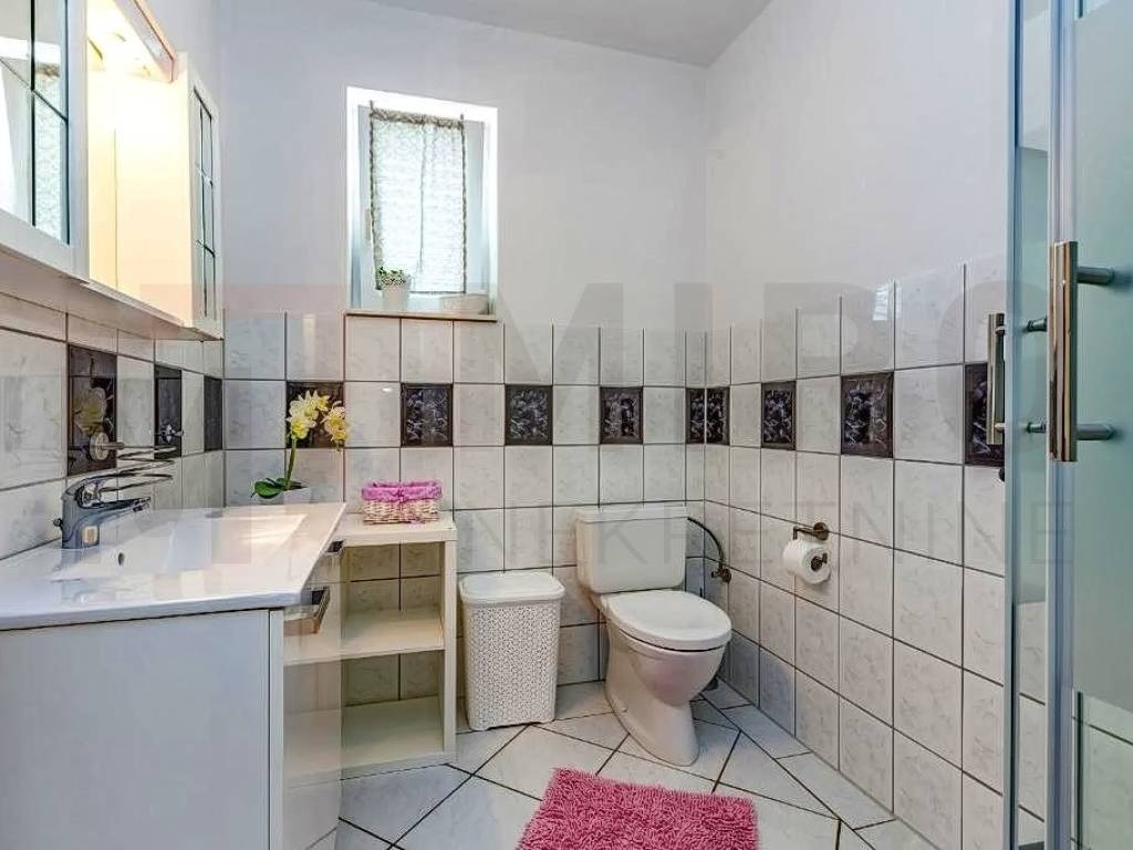 Island of Krk, Malinska, surroundings, detached apartment house with ground floor and two floors, total living area 680 m2. On the ground floor of the property there are two one-bedroom apartments and one two-bedroom apartment, a storage room and a laundry room. Both apartments have access to a landscaped yard and gazebo. Further on, there is a sunbathing area with a swimming pool. An external staircase leads to the 1st floor, where there are 5 studio apartments, each of which has access to a balcony. On the second floor there is a spacious apartment of 177m2. The apartment consists of an entrance hall, three spacious bedrooms, two bathrooms, and a living room, kitchen and dining room that make up the whole. From the living room there is an exit to the terrace, which offers a partial view of the sea and the green belt of the island of Krk. The detached house in the vicinity of Malinska was built in 2003 and renovated in 2016. The house is sold fully furnished and ready for moving in or tourism. Miro nekretnine agency will help you with the safe and transparent transfer of ownership and all necessary documentation. Visit us and find the square footage of your home!