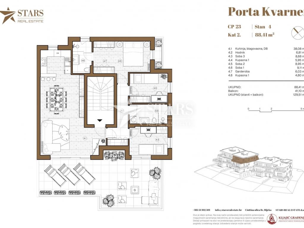 We present Apartment S4, located on the 2nd floor of the modern residential complex PORTA KVARNER – a project of 16 exclusive apartments built to the highest standards, situated in one of the most desirable locations in western Rijeka – Martinkovac.