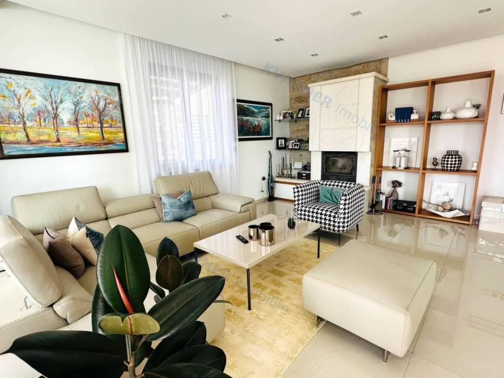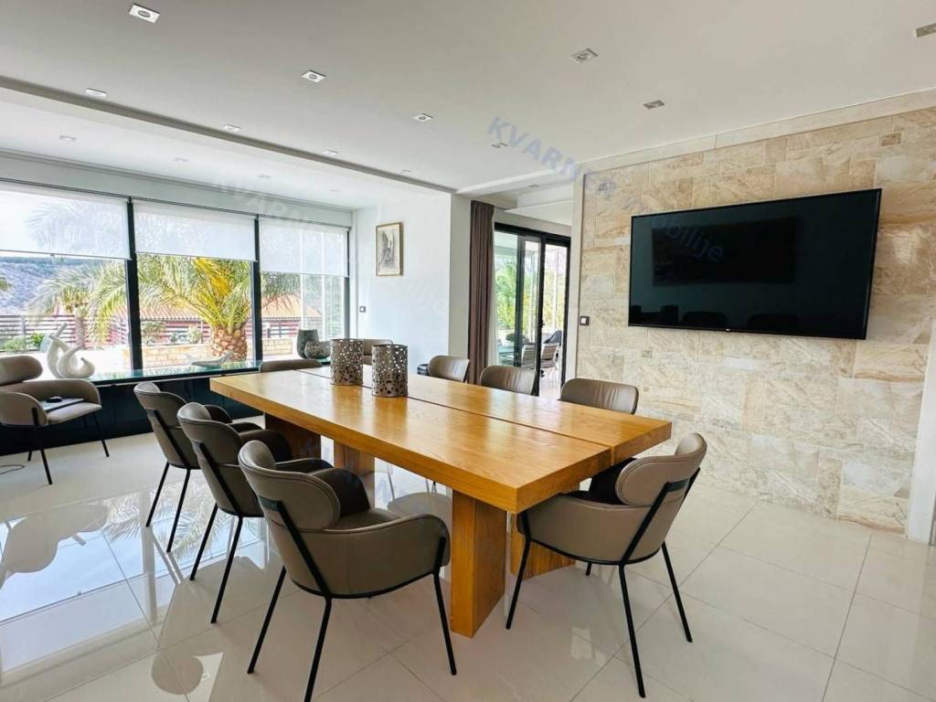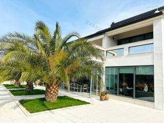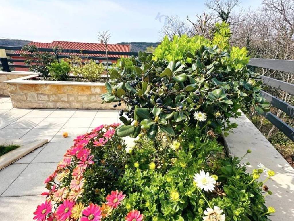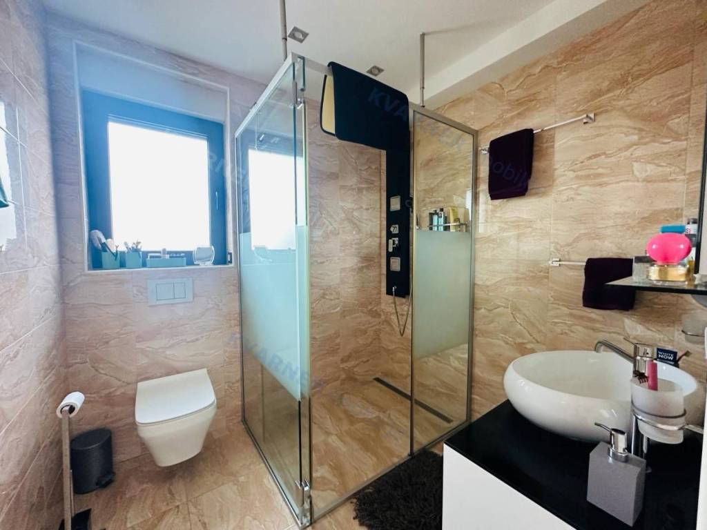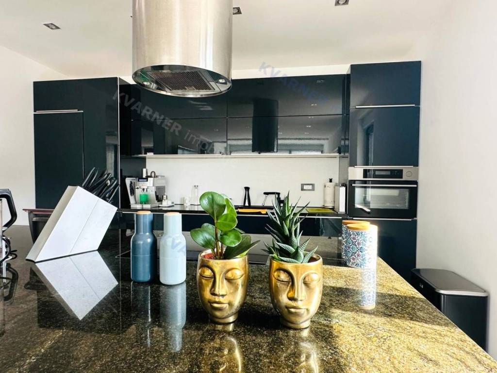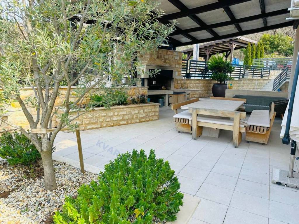 Just 3 km away from the sea and the center of Crikvenica, a detached family villa of exceptional construction quality and interior and exterior design is for sale. Within a fully fenced and landscaped property, there is an outdoor pool, a gathering area with a barbecue, and parking for up to ten cars. The ground floor is designed as a living space, with a slight elevation featuring two steps leading from the spacious dining area and kitchen. The living spaces open onto a paved courtyard, while inside the house, on the northern side, there is an indoor pool with a sauna. On the first floor, there are three bedrooms, each with its own bathroom, as well as a sauna and a bathroom. On the top floor, there is a one-bedroom apartment with a large terrace.