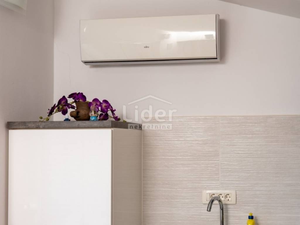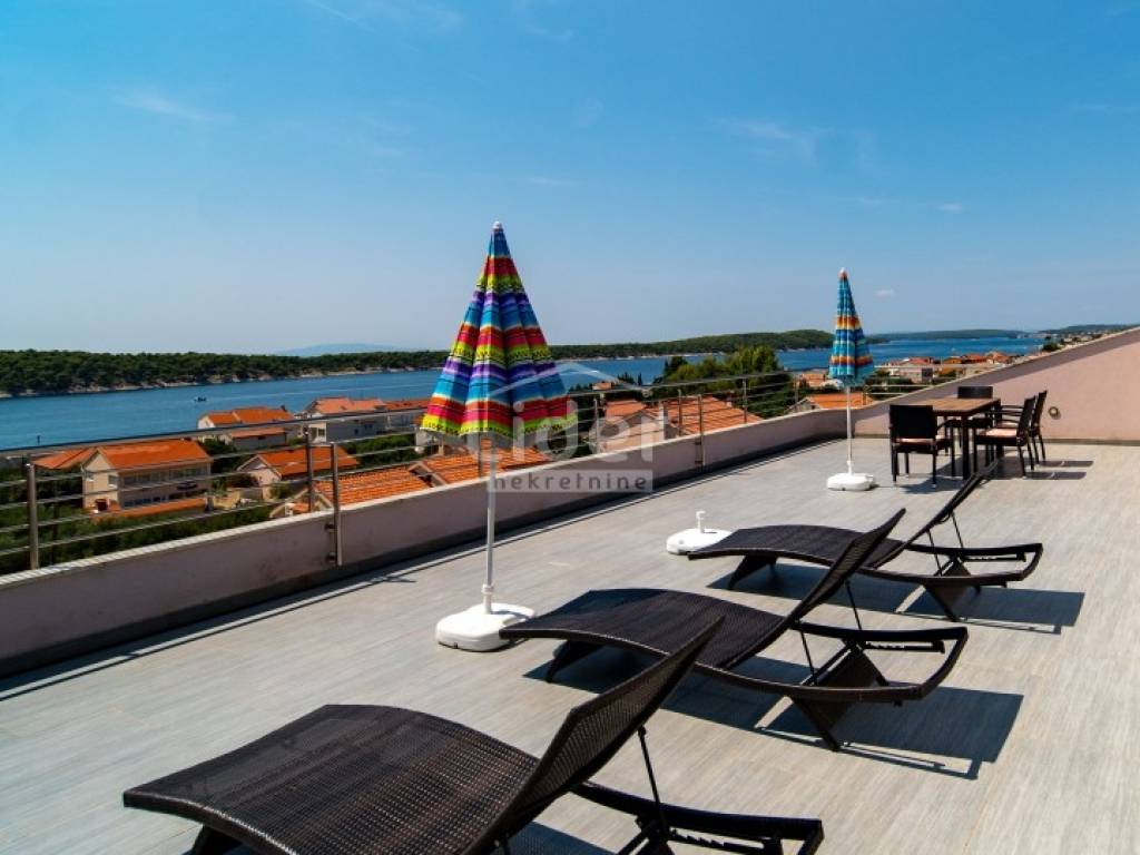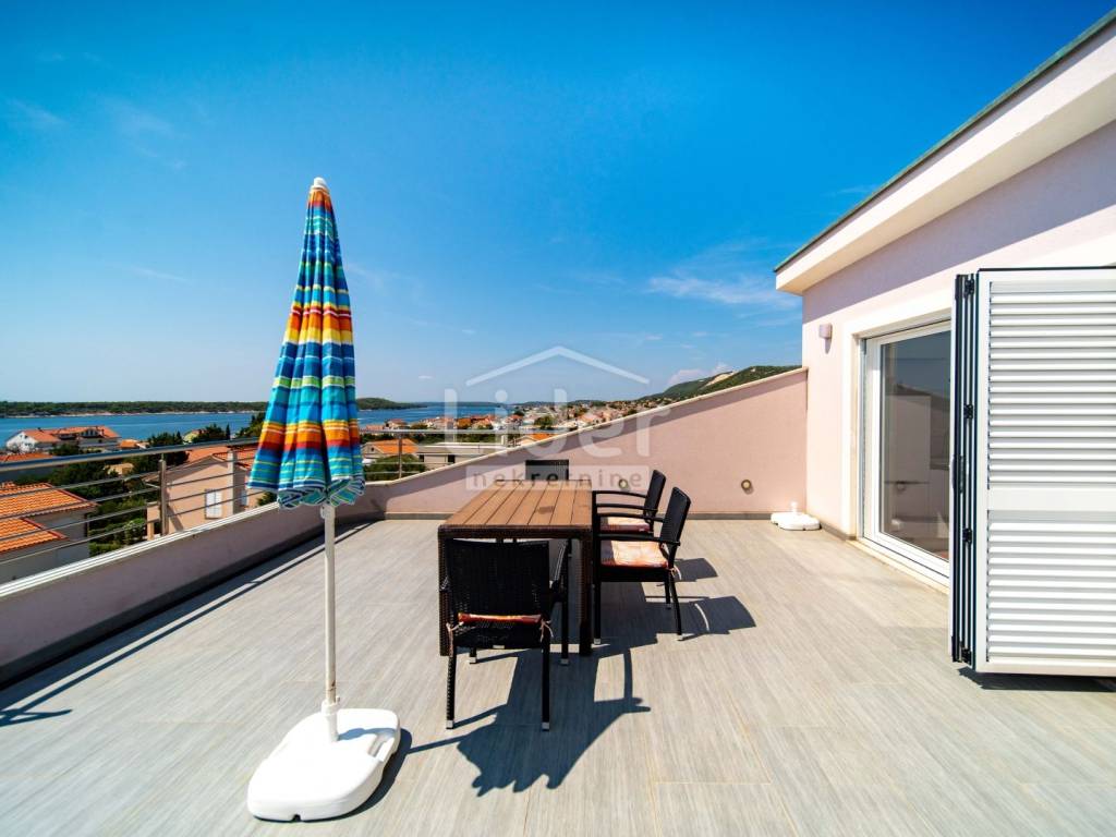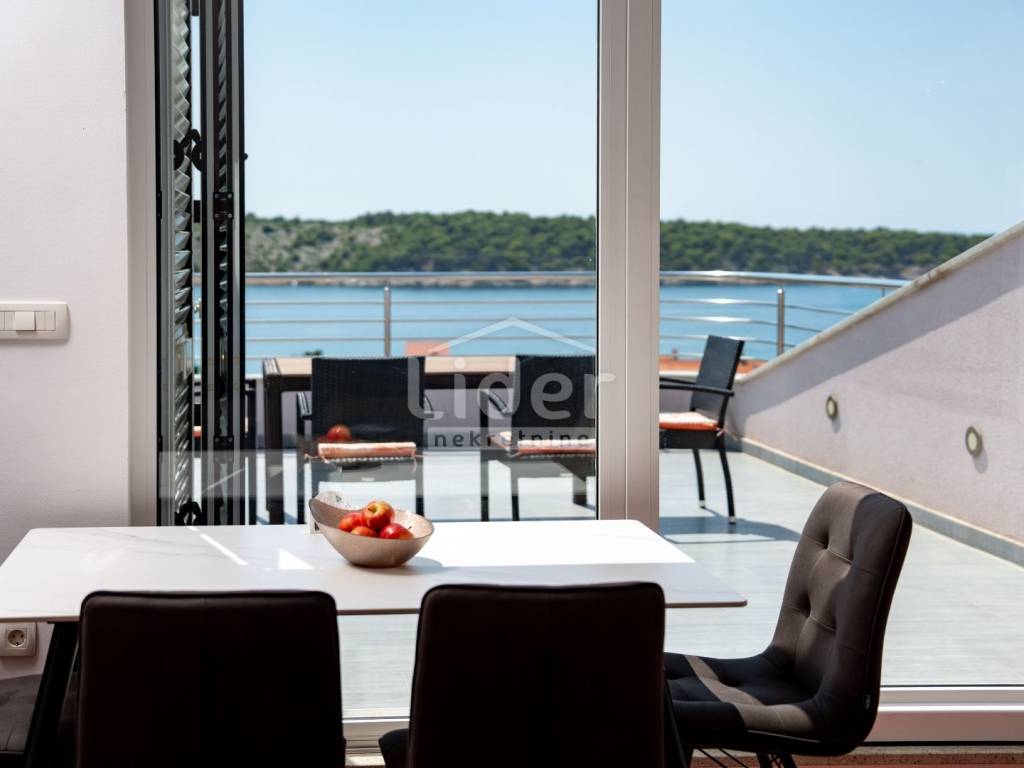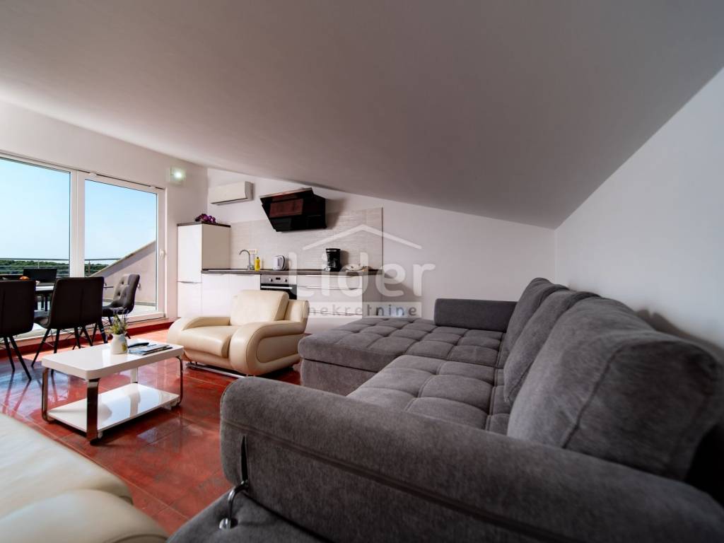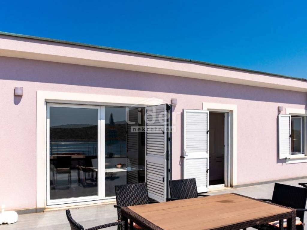 A two-story apartment for sale in Barbat on Rab. It is located on the second floor and in the attic. On the second floor there are two bedrooms, two bathrooms and a kitchen, dining room and living room. There are also two balconies with a wonderful view of the sea. In the attic there is another one-bedroom apartment with a huge terrace of about 60 m2. This terrace has a beautiful view of the sea and offers other outdoor opportunities. There The apartment is sold fully furnished with quality Italian furniture. It also has a small garden in the yard and a parking space. The apartment is located 200 meters from the beach and 5 km from the town of Rab. The building has three apartments.