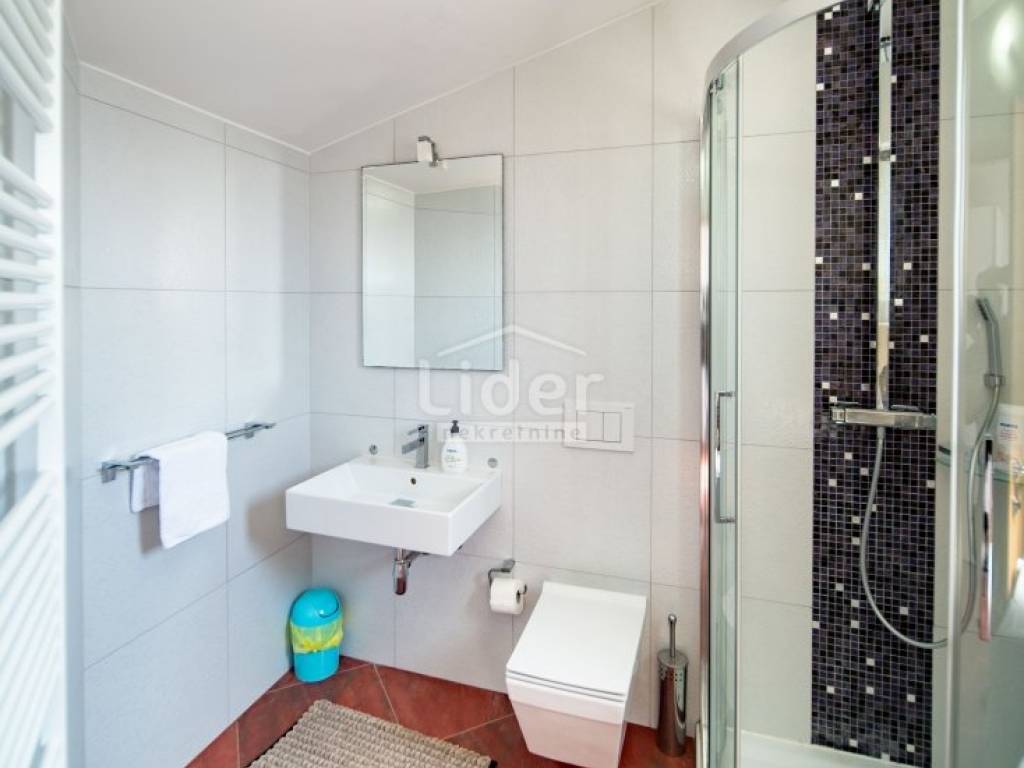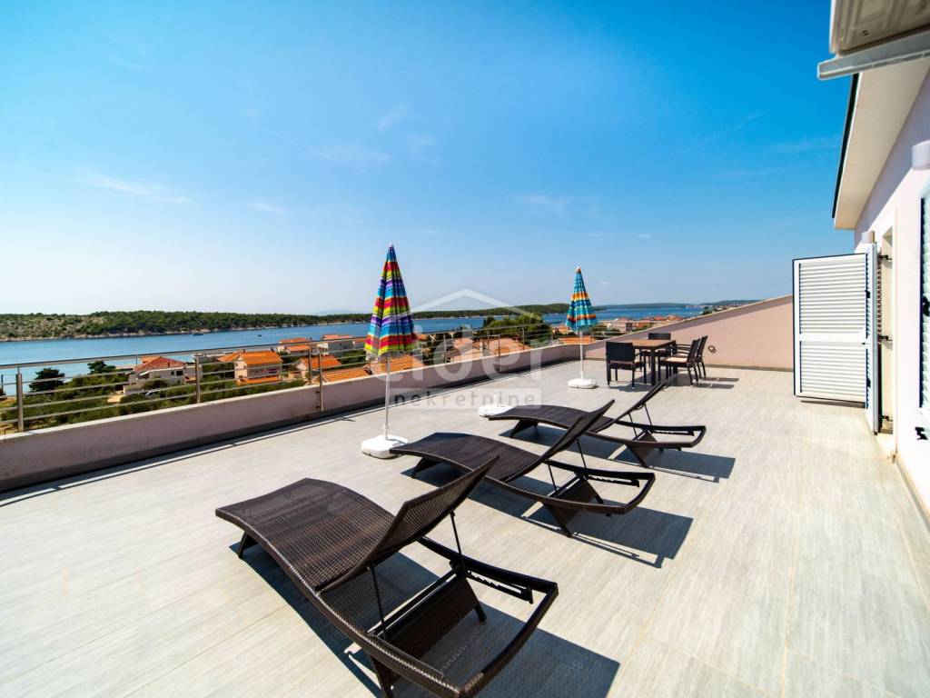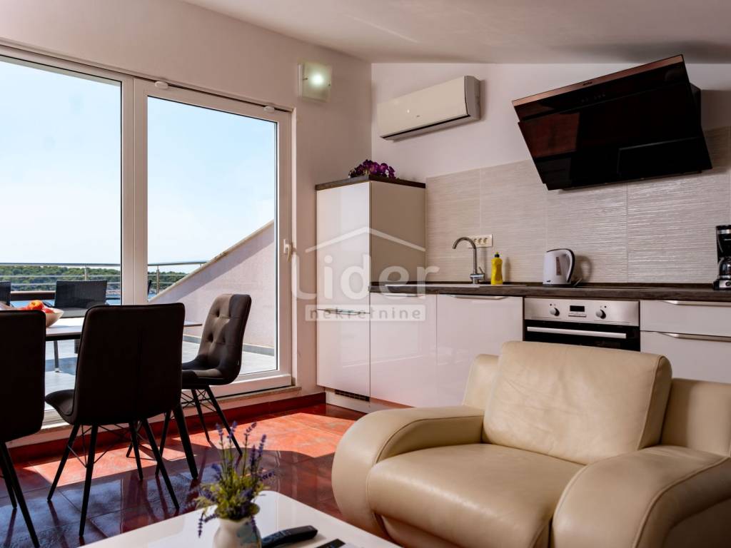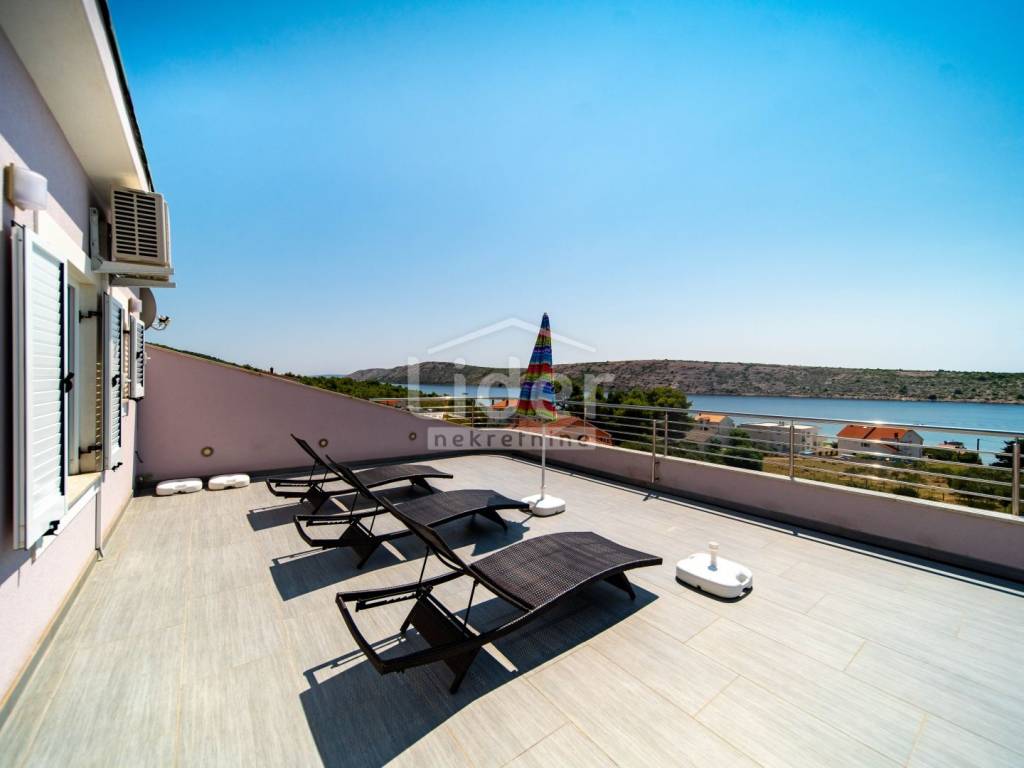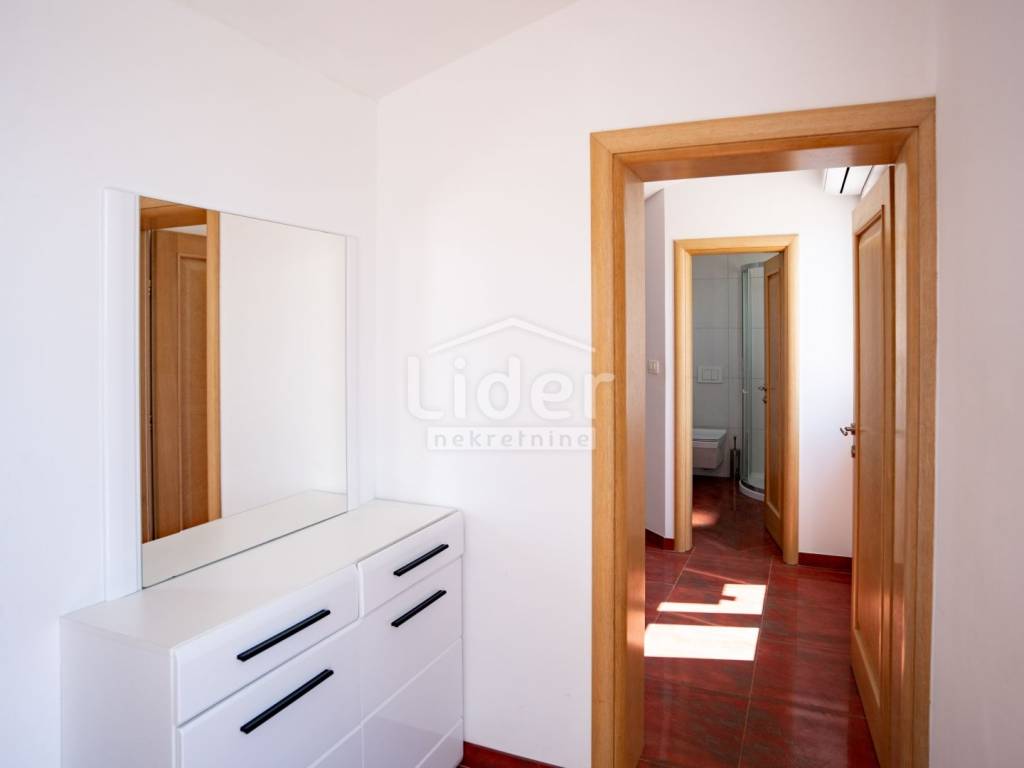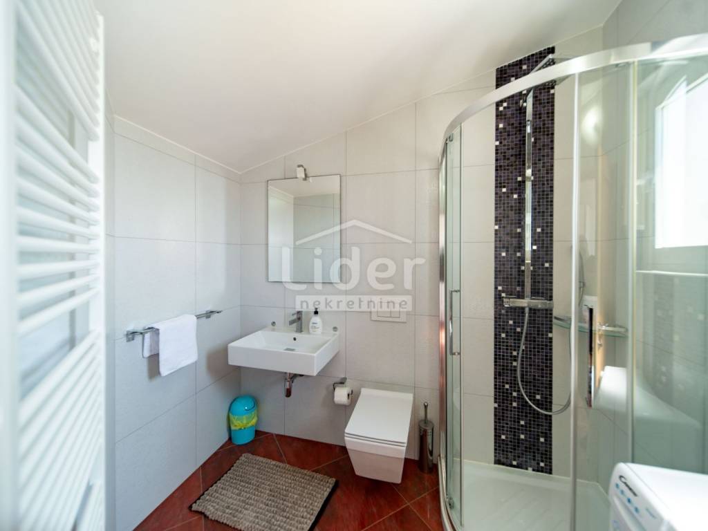 A two-story apartment for sale in Barbat on Rab. It is located on the second floor and in the attic. On the second floor there are two bedrooms, two bathrooms and a kitchen, dining room and living room. There are also two balconies with a wonderful view of the sea. In the attic there is another one-bedroom apartment with a huge terrace of about 60 m2. This terrace has a beautiful view of the sea and offers other outdoor opportunities. There The apartment is sold fully furnished with quality Italian furniture. It also has a small garden in the yard and a parking space. The apartment is located 200 meters from the beach and 5 km from the town of Rab. The building has three apartments.