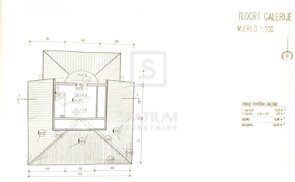 The property offers 155 m² of living space on a 492 m² plot. The open-plan living area combines the kitchen, dining, and living room, while a gallery space serves as an additional lounge. The house features four bedrooms and three bathrooms, one of which is outdoor, with a pool and sunbathing area. A fireplace and air conditioning provide comfort throughout the year.