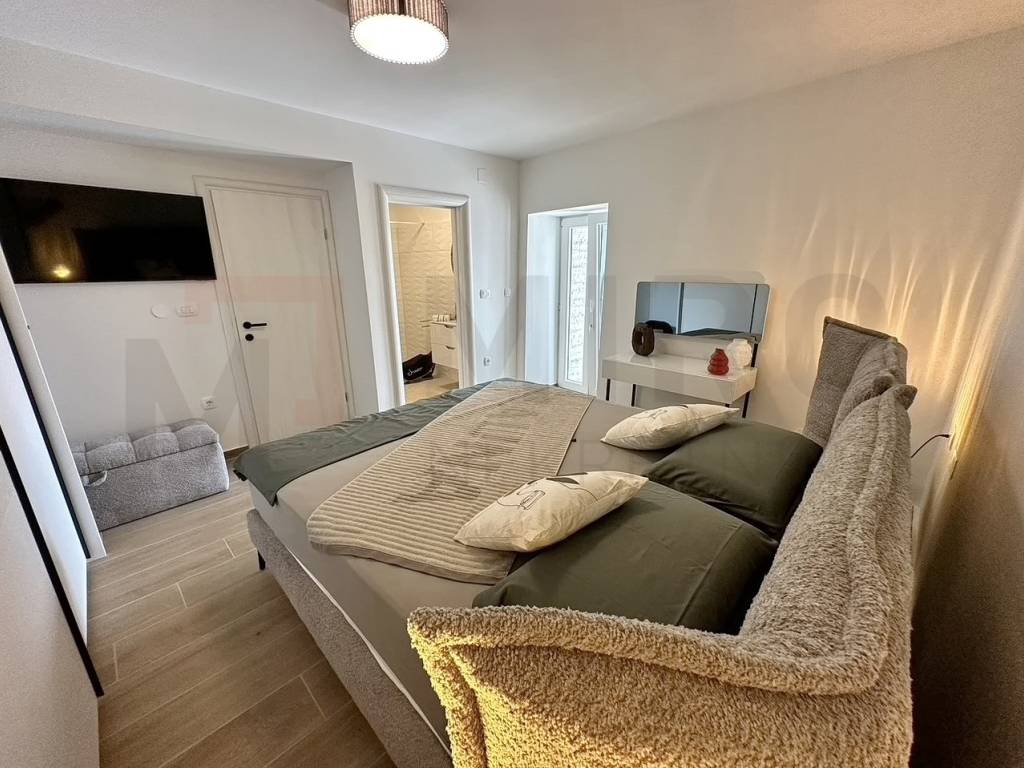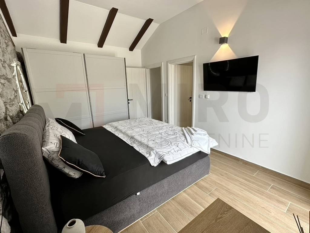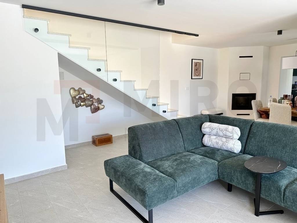 Rijeka, near Opatija, for sale is a rustic stone villa with a beautiful view of the sea in a quiet location. The villa extends over a beautifully landscaped garden of 870 m², where there is a large heated swimming pool, a children's playground, a covered terrace of 24 m² and a wood-burning fireplace. On the ground floor there is a bedroom with its own bathroom, toilet, large living room, dining room and kitchen, from which there is access to a covered terrace with a garden. Upstairs are 3 bedrooms, each with its own bathroom and balconies with sea views. Heating and cooling is regulated by air conditioning (control via Wi-Fi), floor heating is installed throughout the house, and there is a pellet fireplace in the dining room. The villa has 3 solar panels with a 400 L boiler - hot water, and is equipped with a video surveillance and alarm system. The pool is equipped with a water heating system using a heat pump. The Mediterranean plants and lawn in the garden are maintained by a smart irrigation system. A remote-controlled garage and laundry room, as well as a parking lot that can accommodate up to 10 vehicles, are an integral part of this beautiful rustic villa. This beautiful villa has an elegant Mediterranean-style exterior and interior, quality construction and carefully selected equipment that is included in the price. The real estate is owned by a natural person and the buyer is subject to the obligation to pay real estate sales tax in the amount of 3%. The real estate seller guarantees a quick transfer of ownership rights and proper ownership documentation. Visit us and find the square footage of your home!