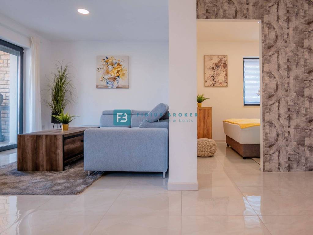 VODICE - A beautifully furnished ground floor apartment with a garden and a separate studio apartment is for sale, in a fantastic location, only 300 m from the city beach and 600 m from the city center!