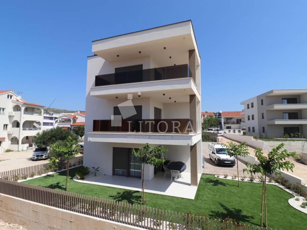 Vodice – Newly built 3-bedroom apartment with terase and sea view, 400 m from Plava plaža.