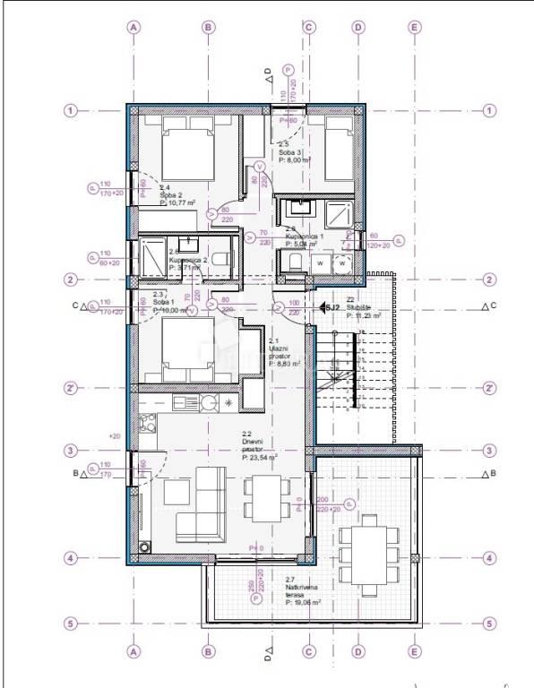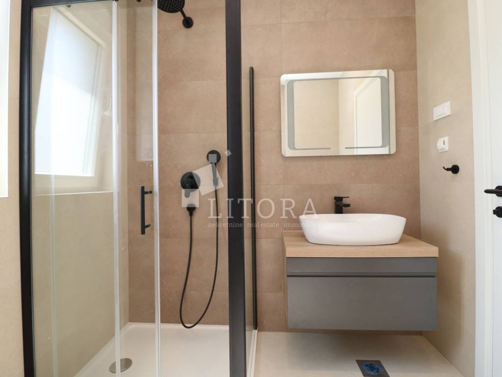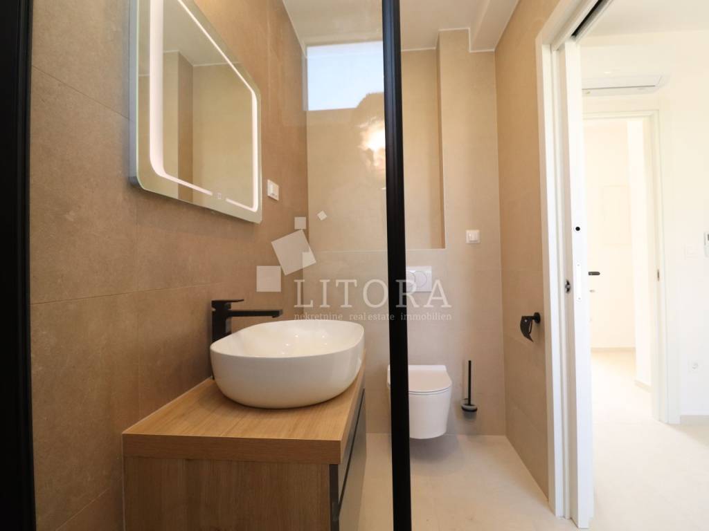 A newly constructed apartment with a total usable area of 89,42m², located within on the 1st floor a smaller residential building. The apartment is southwest-oriented and offers a sea view.