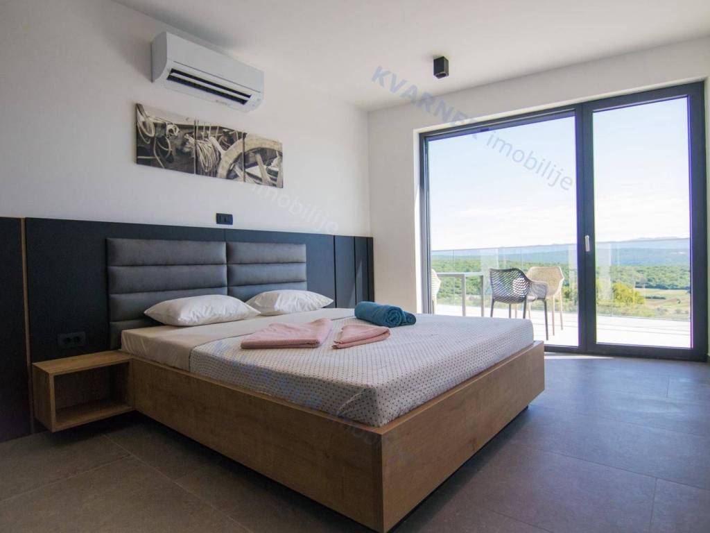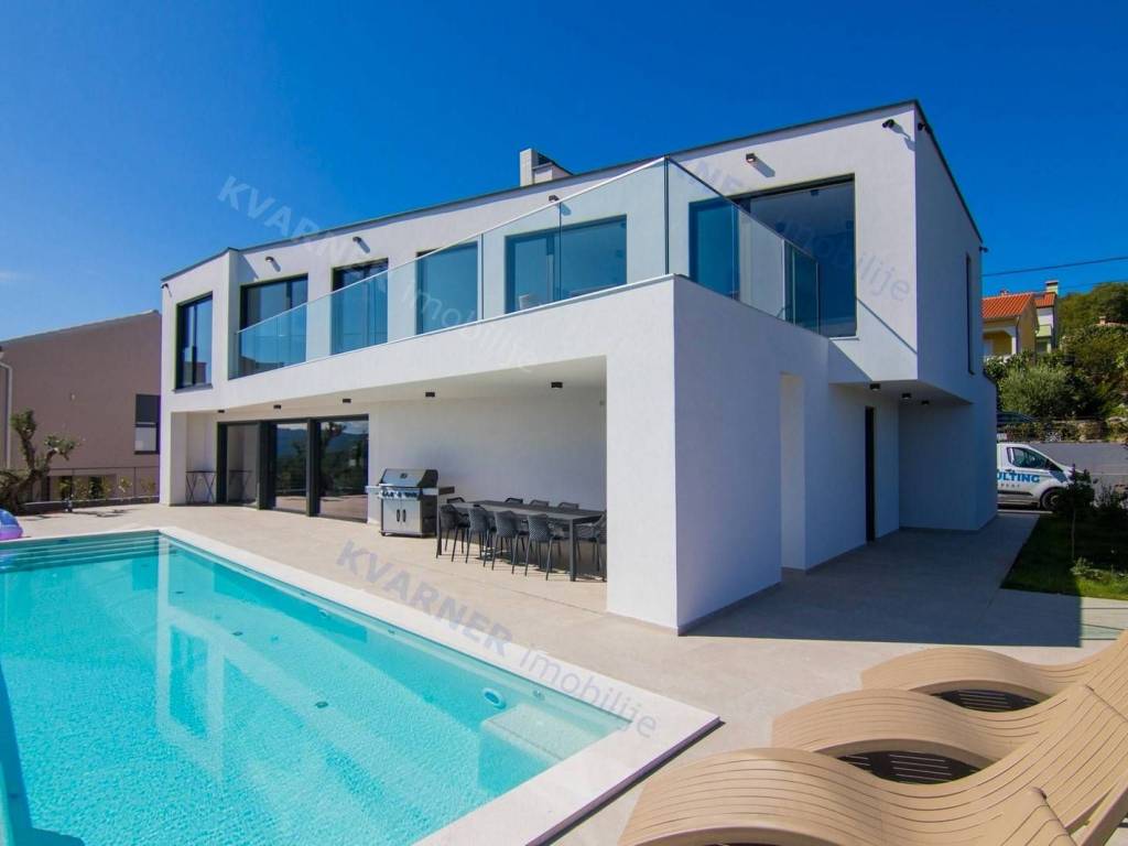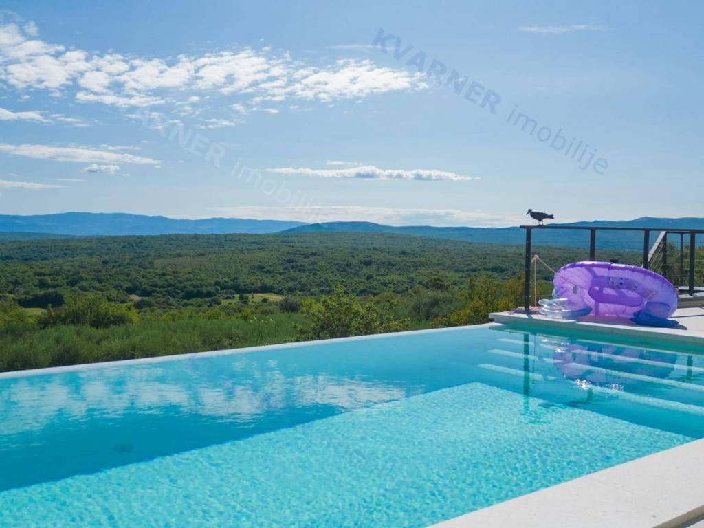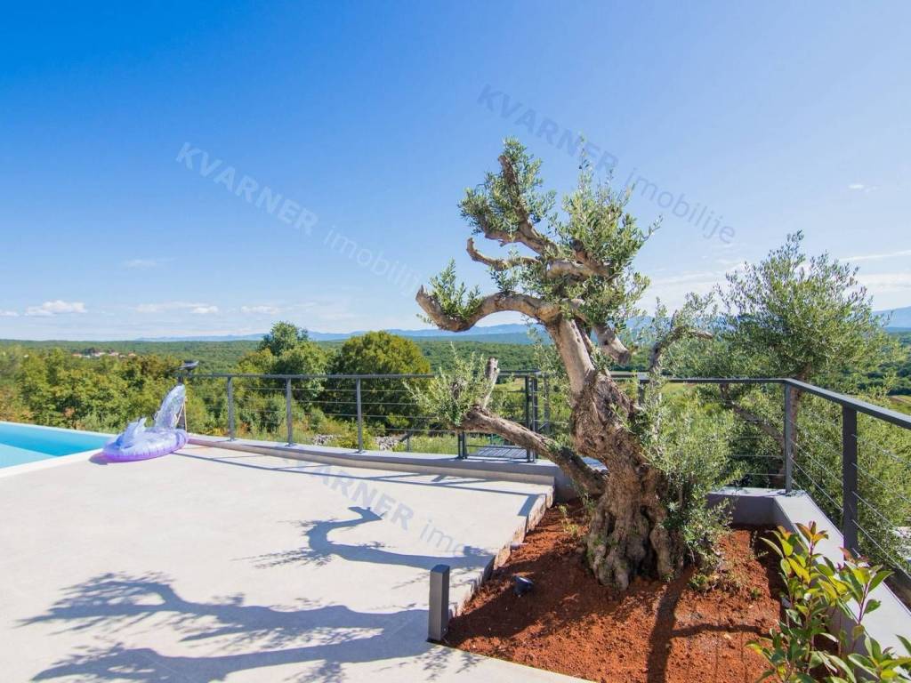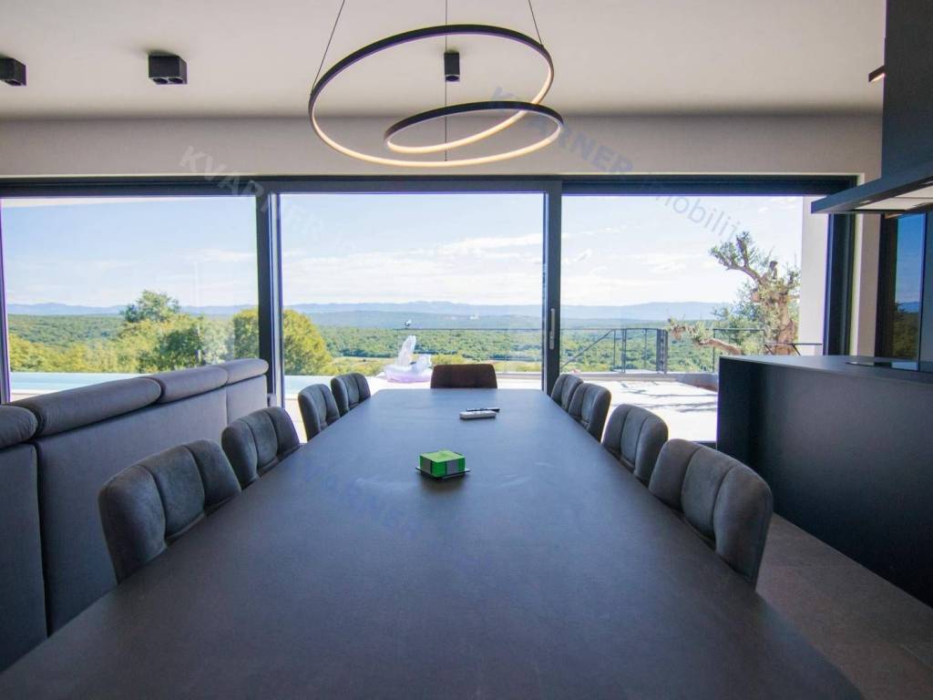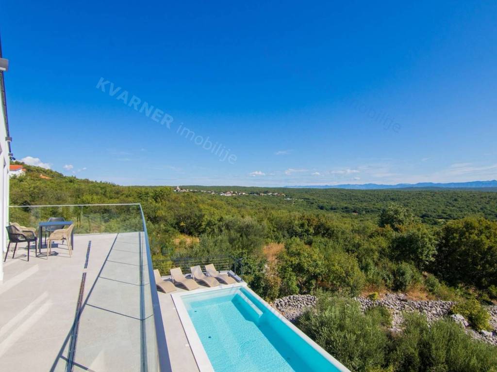 Situated in a quaint village close to the city of Krk, this contemporary detached villa is positioned on the edge of the construction zone..On the ground floor of the property, there is a garage, a laundry room with storage, wellness area, bathroom, kitchen with dining area, and a living room that opens onto a covered terrace with a barbecue and a beautifully landscaped garden with an infinity pool and a sunbathing area. Internal stairs ascend to the first floor, where you will find four bathrooms and four bedrooms, three of which grant access to a balcony with a stunning sea view and surrounding nature. The villa is currently in the process of obtaining a building permit, and construction is scheduled to begin in the autumn of 2023.