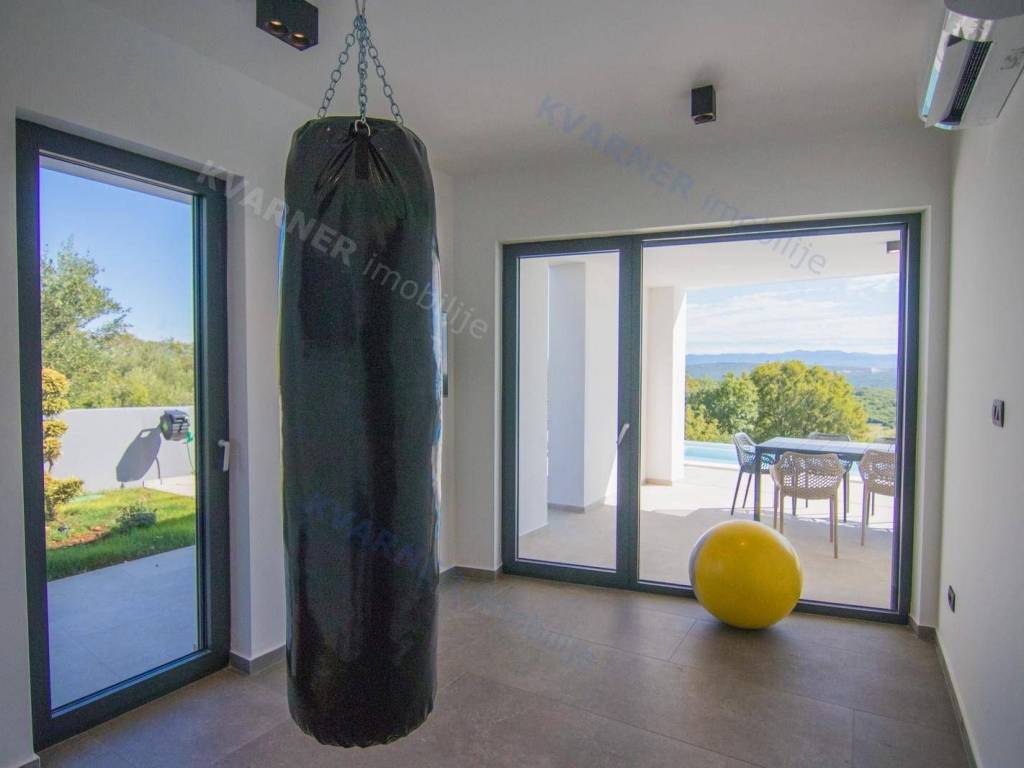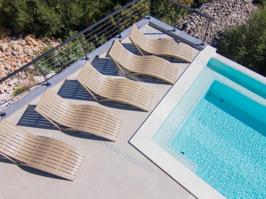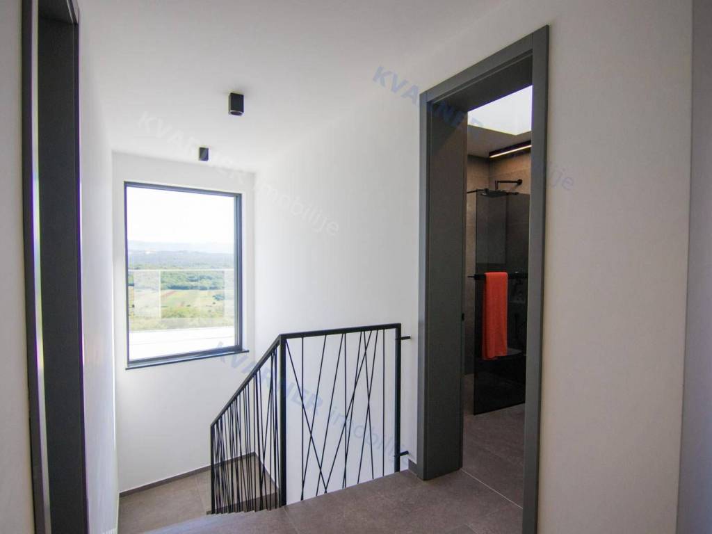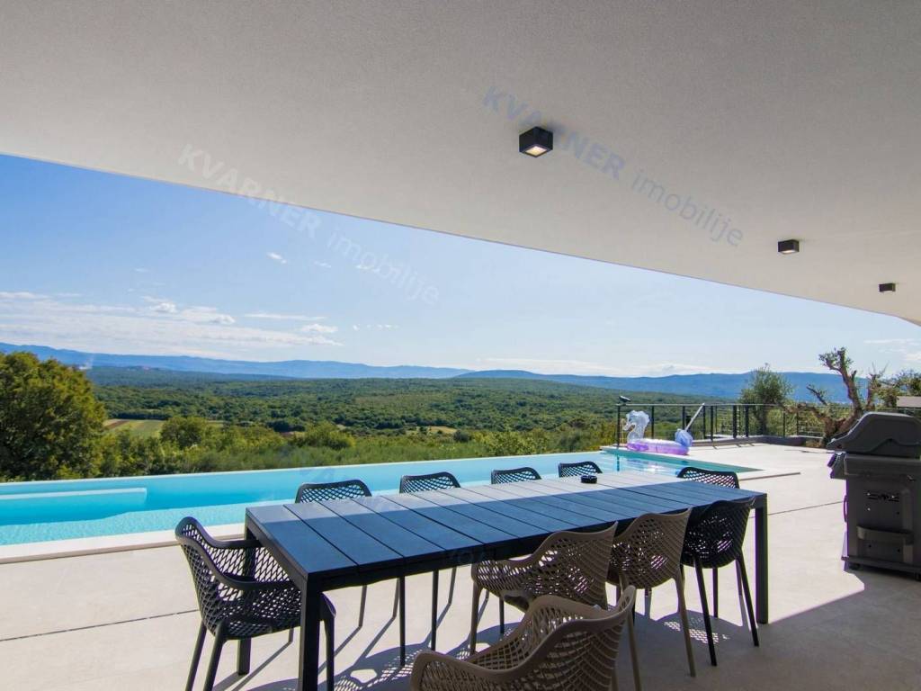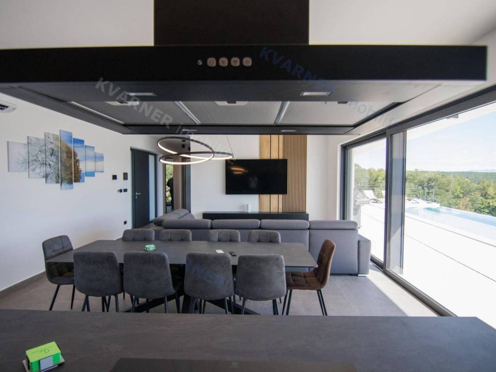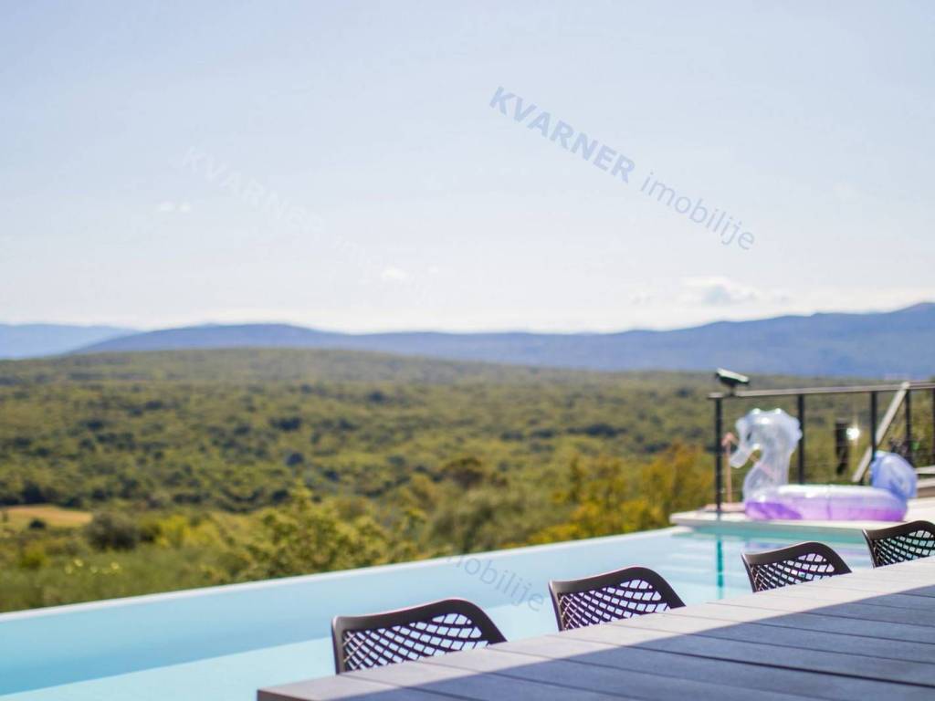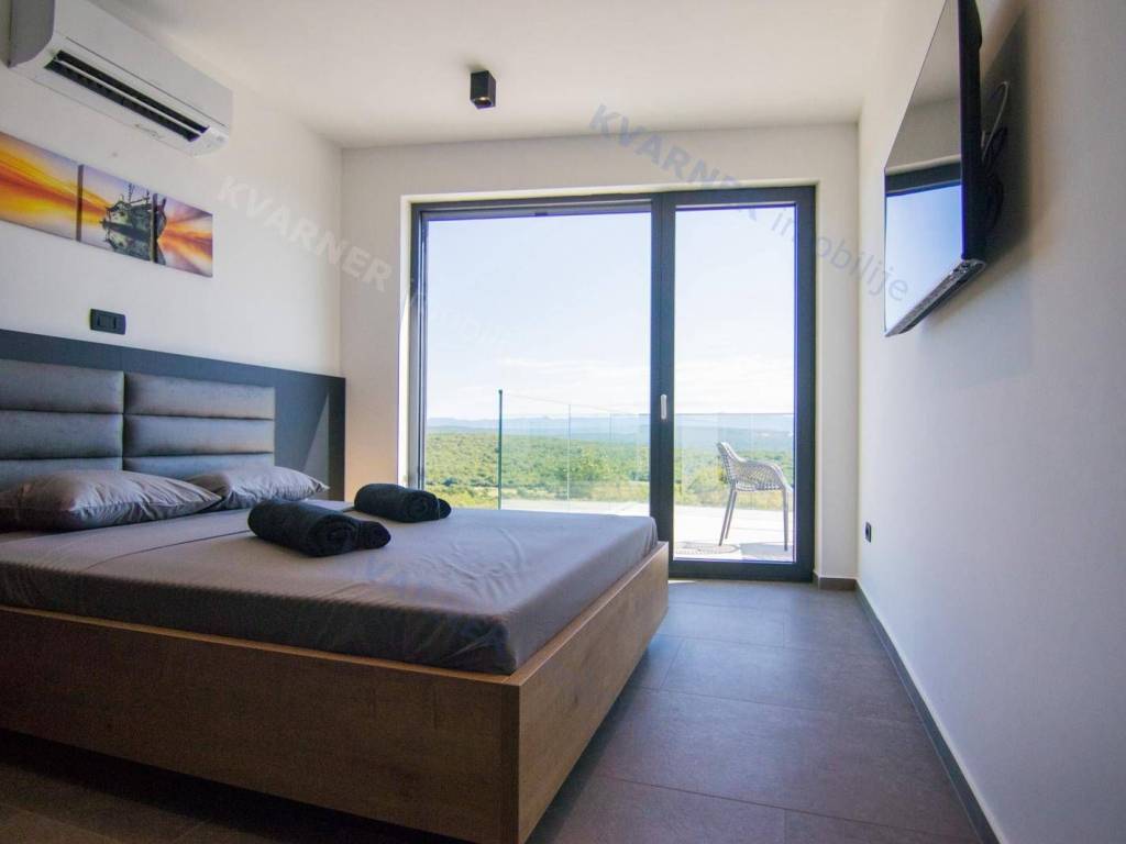 Situated in a quaint village close to the city of Krk, this contemporary detached villa is positioned on the edge of the construction zone..On the ground floor of the property, there is a garage, a laundry room with storage, wellness area, bathroom, kitchen with dining area, and a living room that opens onto a covered terrace with a barbecue and a beautifully landscaped garden with an infinity pool and a sunbathing area. Internal stairs ascend to the first floor, where you will find four bathrooms and four bedrooms, three of which grant access to a balcony with a stunning sea view and surrounding nature. The villa is currently in the process of obtaining a building permit, and construction is scheduled to begin in the autumn of 2023.