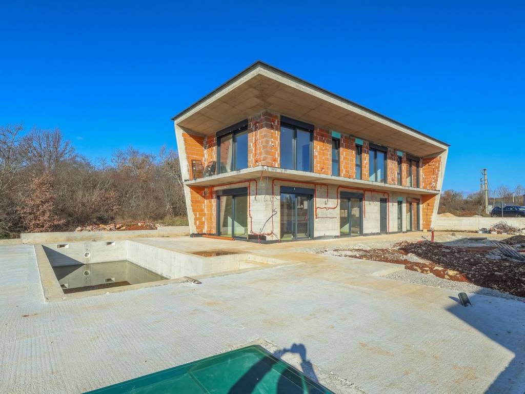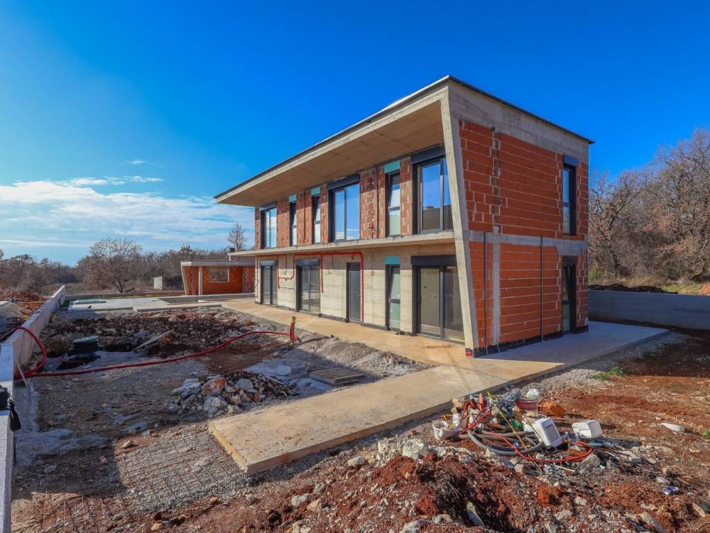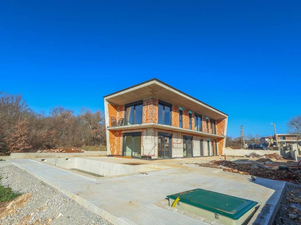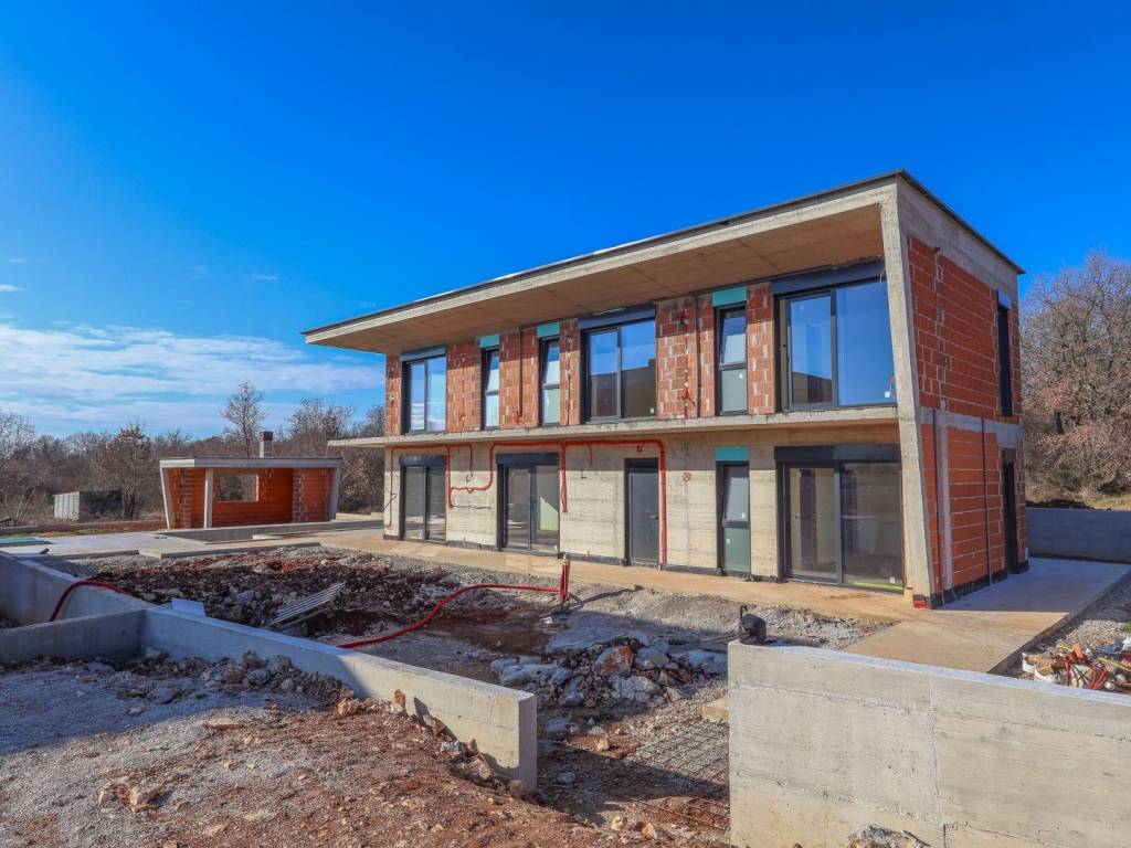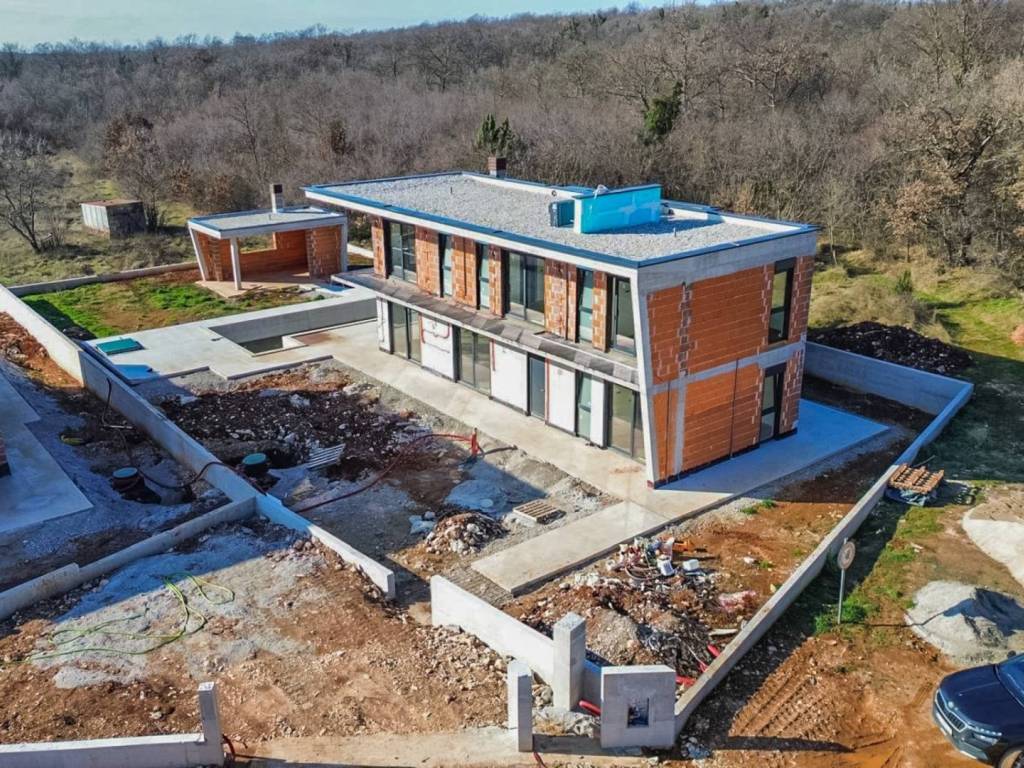 We offer for sale "Villa Black Beauty", a modern design whose construction is just starting. The villa is built on a plot of 1080 m2, which is surrounded on one side by a forest, and on the other side of the street are neighboring houses that are rented during the summer season. The location is extremely attractive for everyone who likes to enjoy silence, while at the same time being a few minutes' drive from larger city centers.