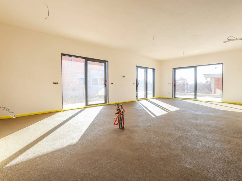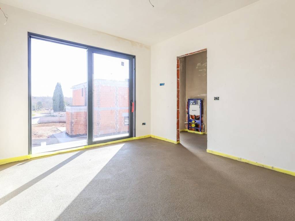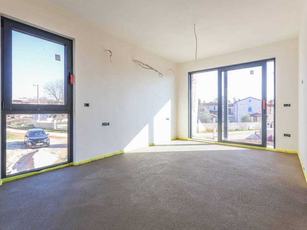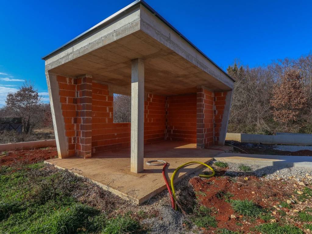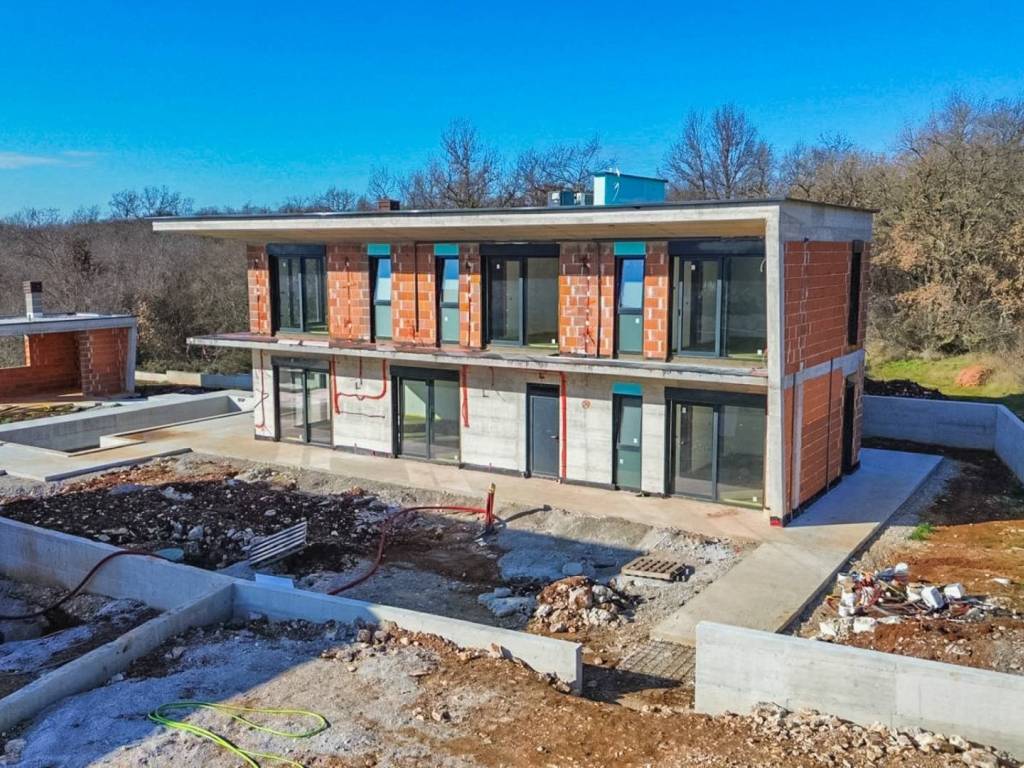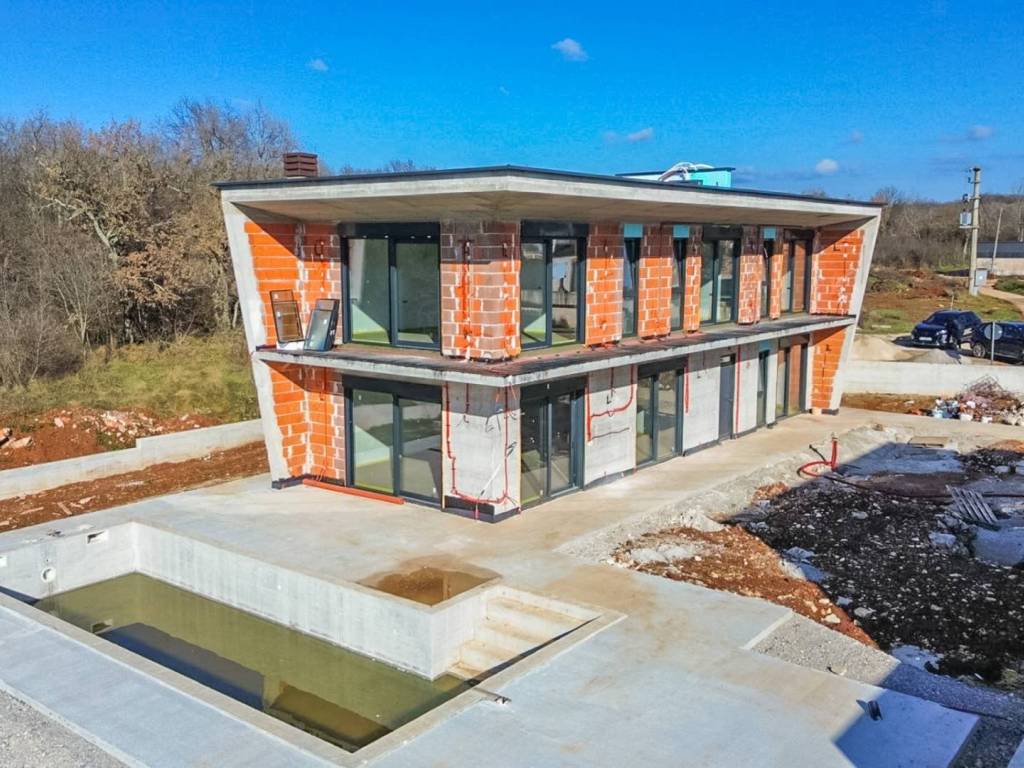 We offer for sale "Villa Black Beauty", a modern design whose construction is just starting. The villa is built on a plot of 1080 m2, which is surrounded on one side by a forest, and on the other side of the street are neighboring houses that are rented during the summer season. The location is extremely attractive for everyone who likes to enjoy silence, while at the same time being a few minutes' drive from larger city centers.