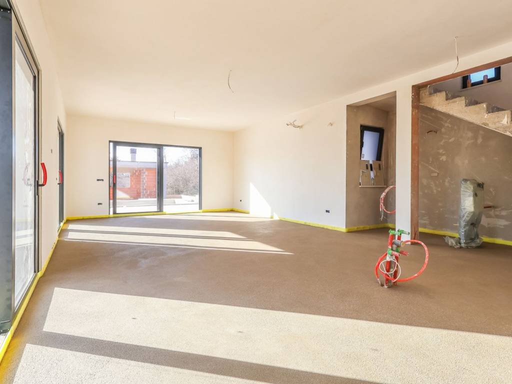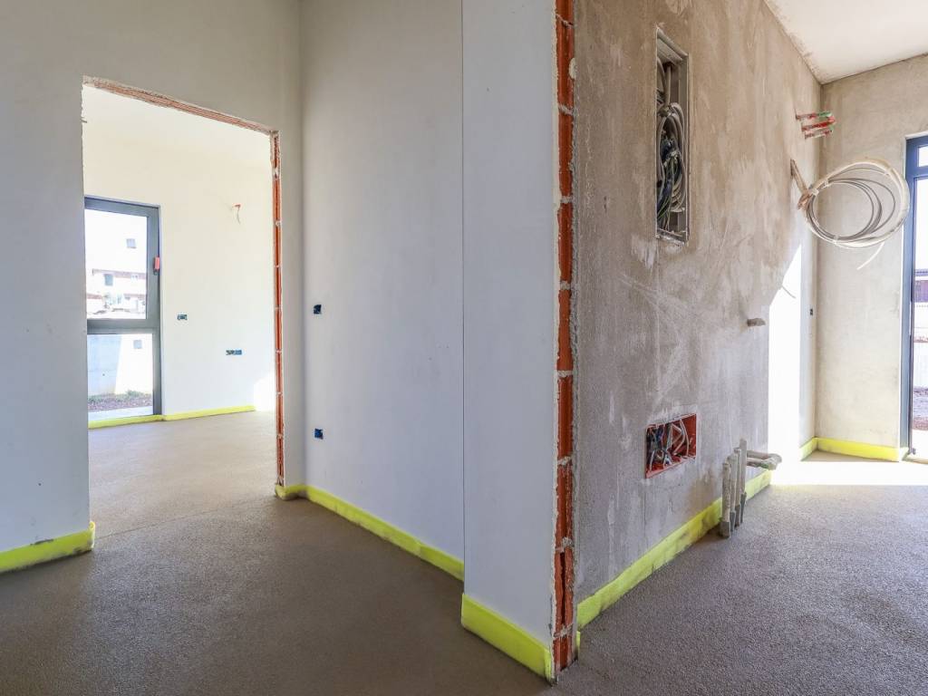 Floor coverings: ceramic on the ground floor, while parquet flooring is planned in the bedrooms.